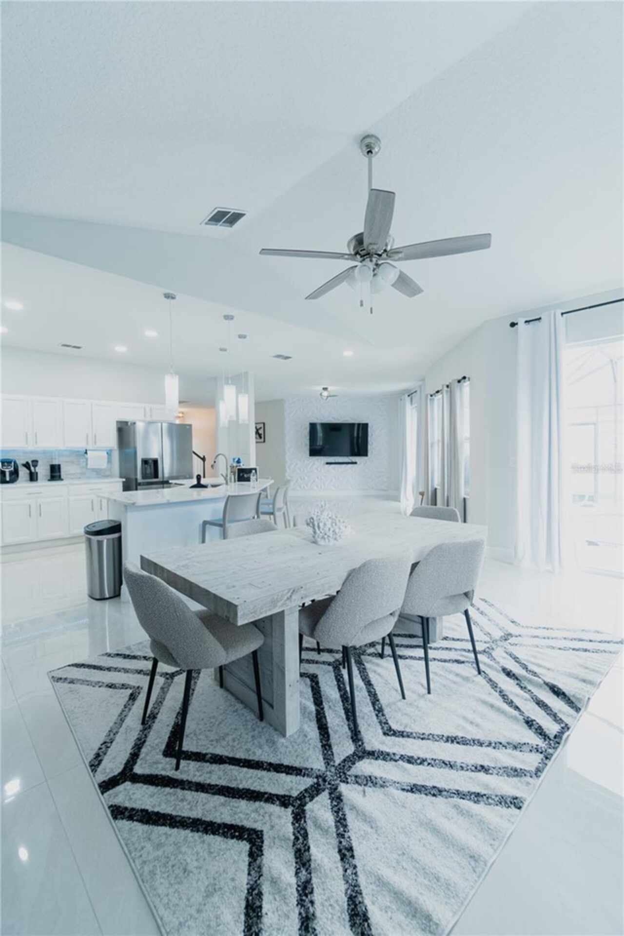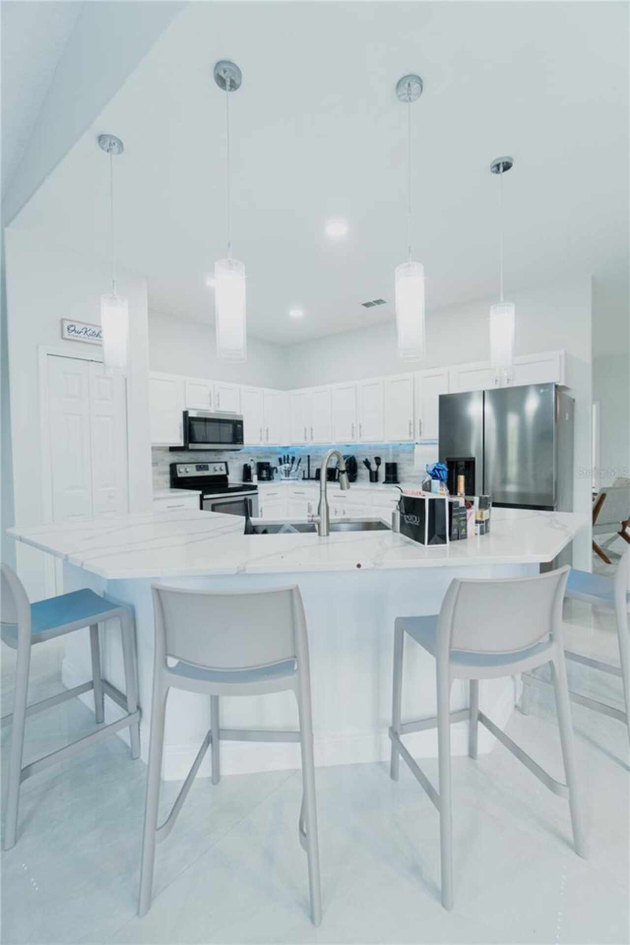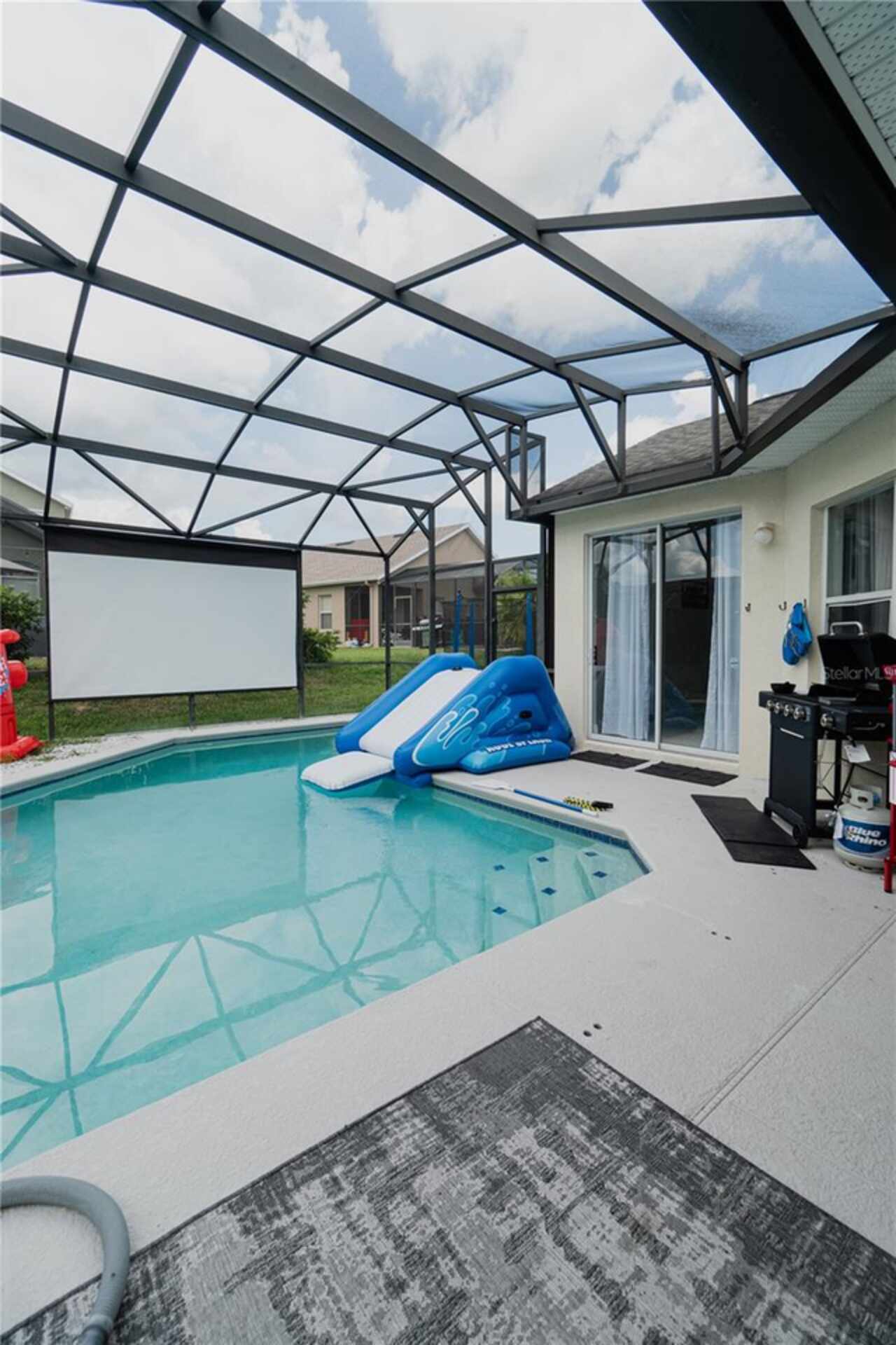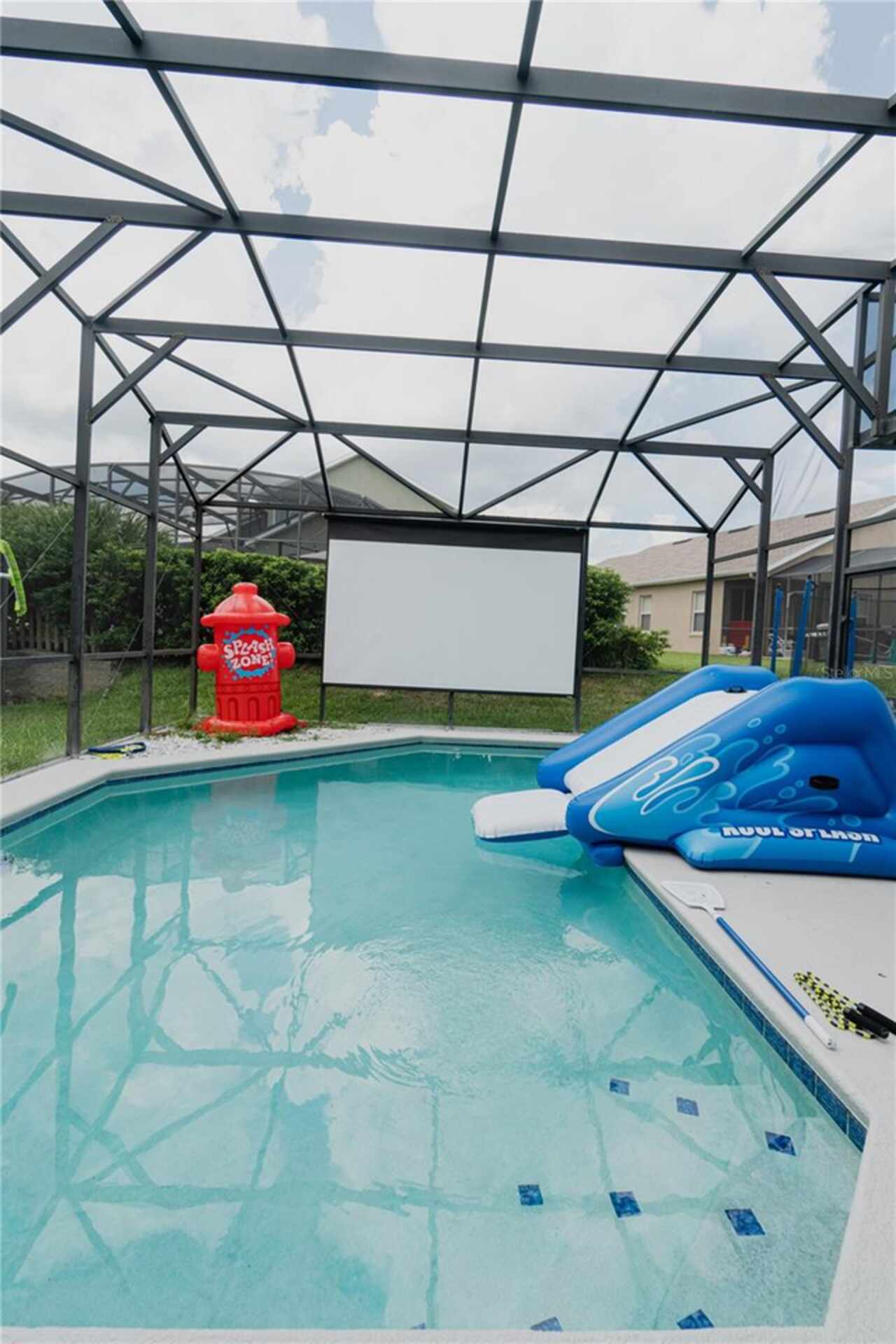 Electricity included!! Move-In after October 1st. Amazing move-in ready home in the Village of Tuscan Ridge! This beautiful property has an open floor plan and features 5 bedroom and option to have it fully furnished or furniture removed, 3.5 bathrooms, and ample entertainment space, blending luxury with functionality. The bright modern kitchen features new stainless steel appliances, breakfast bar, pantry, and granite countertops. The home also comes with solar panels which reduce utility costs significantly, new AC and new water heater. Enjoy the large screened-in lanai pool area with easy access from the primary bedroom, and living room with sliding doors showcase the pool. Perfect for dining, lounging, and entertaining. The master bedroom on the first floor, with large closet and a stunning en-suite bathroom, promises comfort. Four additional bedrooms upstairs with ample storage space. Washer and dryer included for your convenience. Great location near Disney and major Theme Parks, Champions Gate, Posner Park Shops, Restaurants, Walmart, Publix, and key highways like Highway 27 and I-4. Trash services are included. Tenants cover utilities and basic maintenance. Schedule your viewing today to discover your dream home and experience the Central Florida Lifestyle!