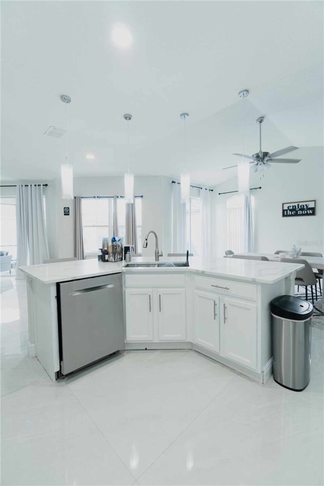 Ceiling Fans(s), Eat-in Kitchen, High Ceilings, Kitchen/Family Room Combo, Living Room/Dining Room Combo, Open Floorplan, Solid Surface Counters, Thermostat