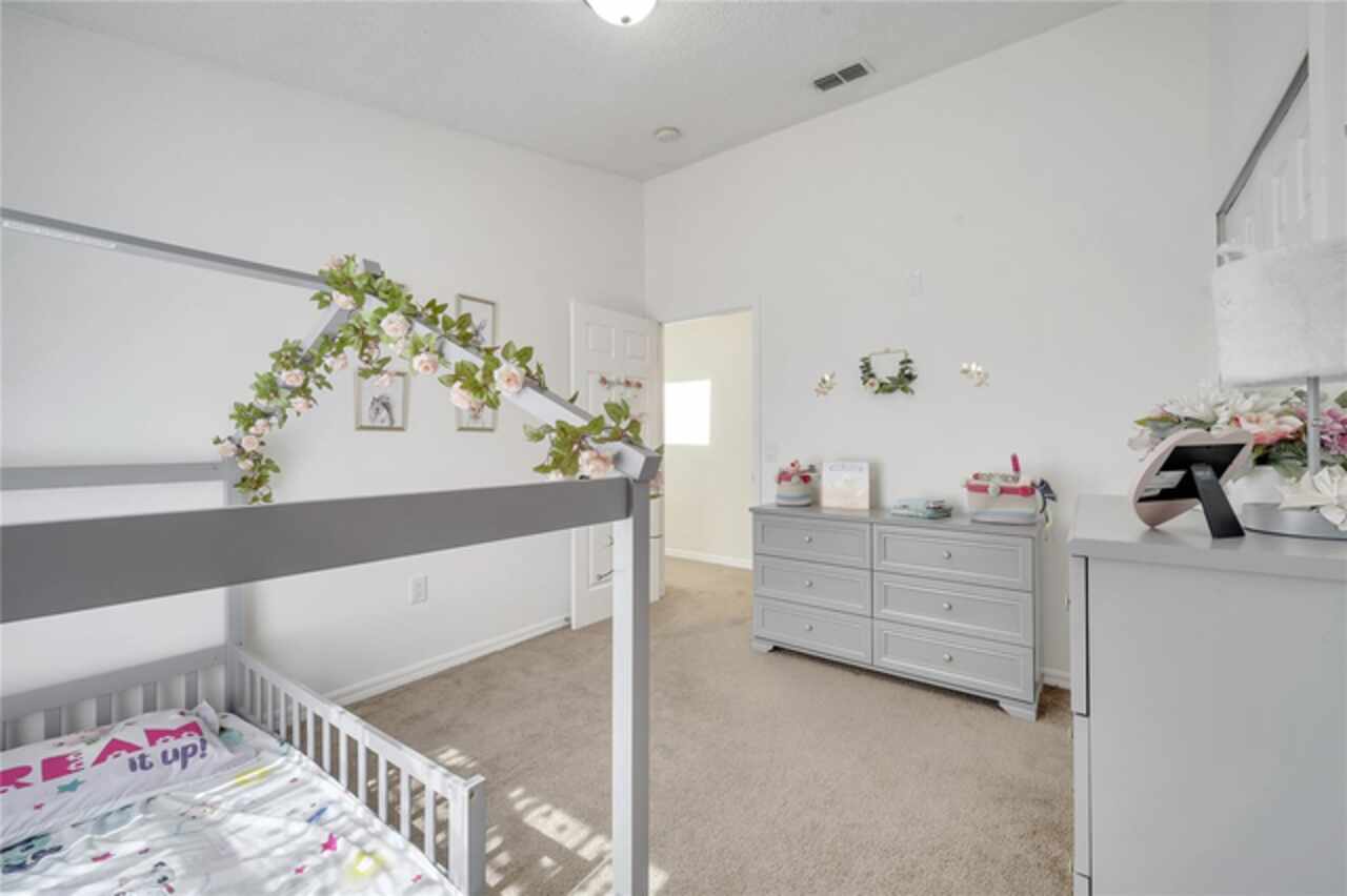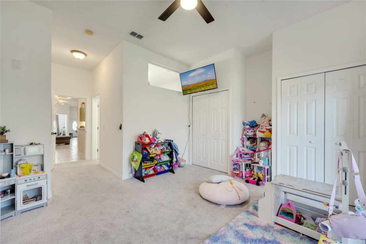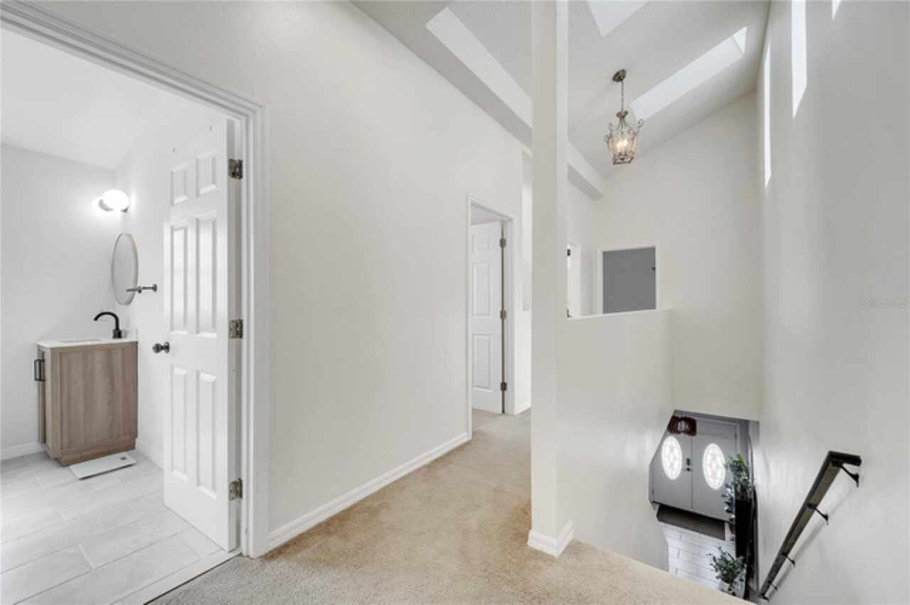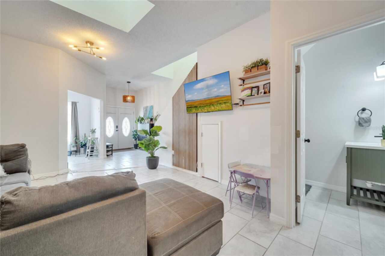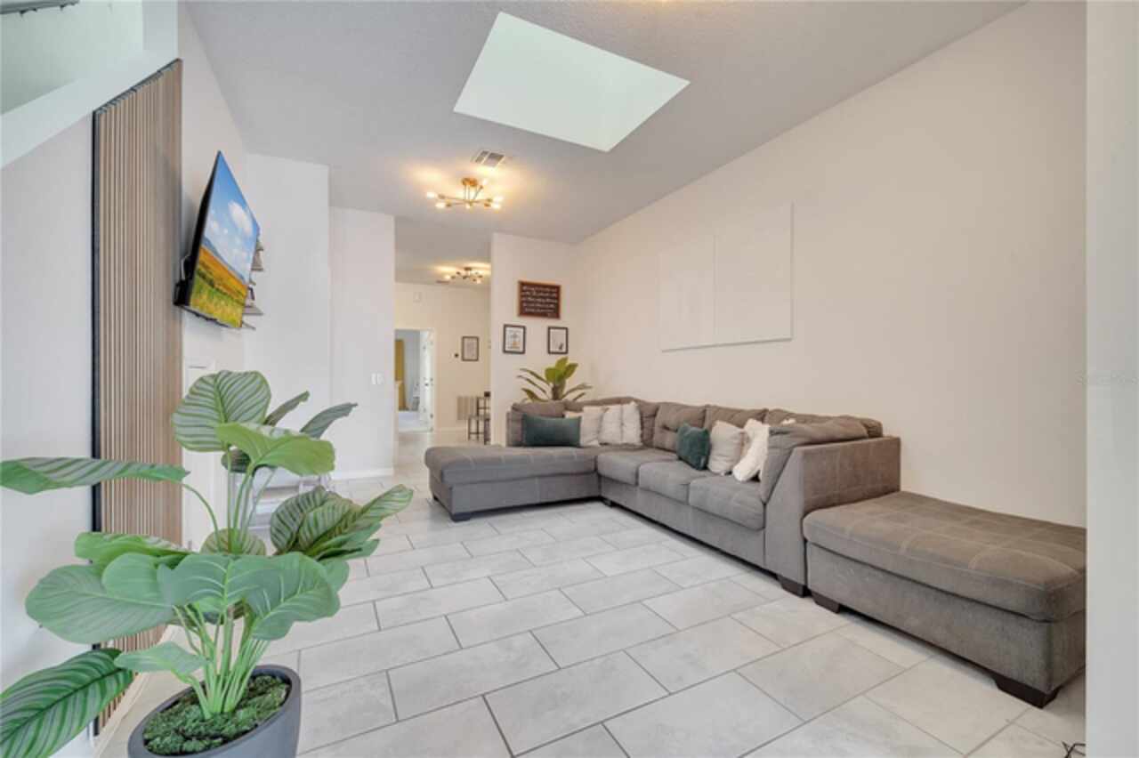 This beautiful home is now available for rent - and there's nothing that compares. Boasting over 2, 100 sq feet of bright space and high ceilings this home offers 5 bedrooms and 3.5 bathrooms in a gated community in sought after Kissimmee; size, condition and location are hard to beat! The primary bedroom and bathroom are located on the first floor (currently set up as a huge playroom) and the study/den office space are ready for a new family to take over. The modern kitchen hosts the laundry and an eating space with stone countertops plus open floorplan. The rest of the bedrooms are located on the second floor where you're bathed in sunlight with the many skylights throughout the home. One of the bedrooms opens up to a beautiful porch perfectly set up for your morning meditation and coffee. Request your showing today!