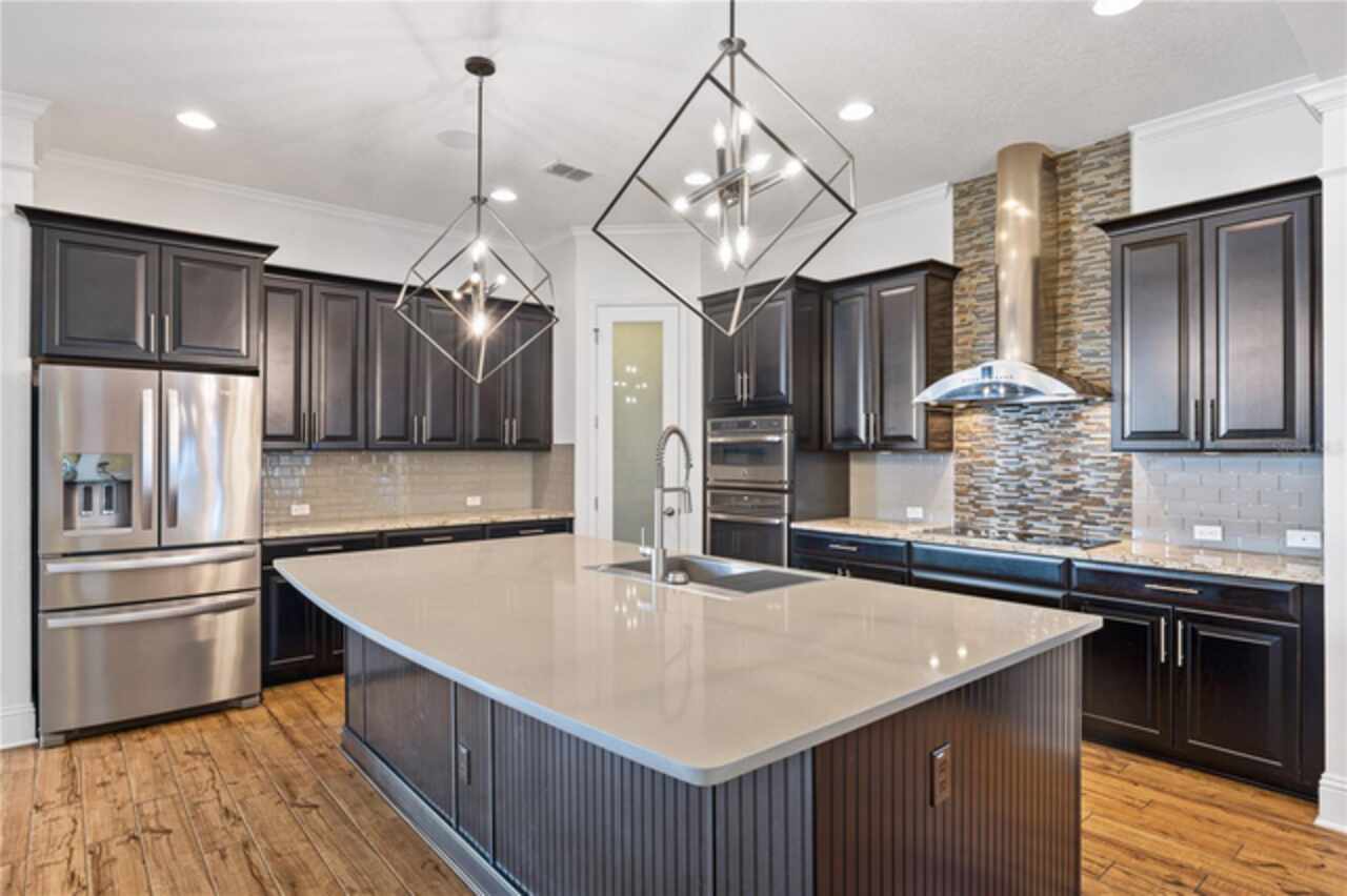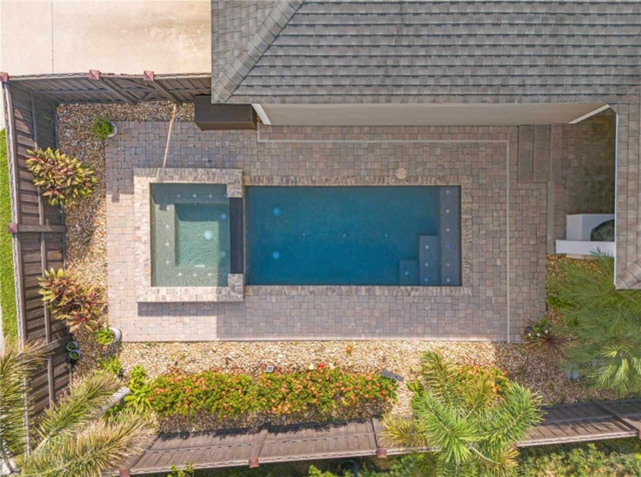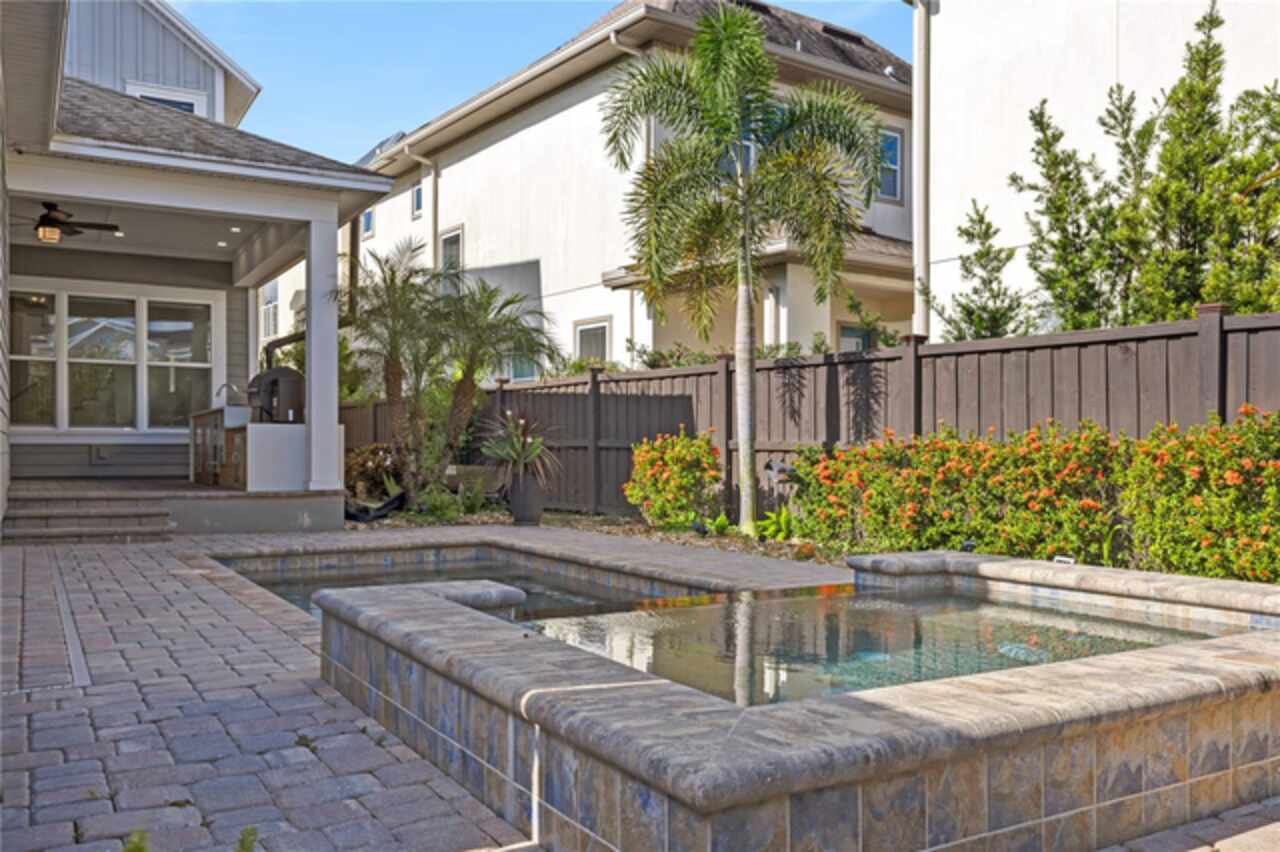 Live in style in this stunning and fully upgraded home on a quiet street with breathtaking water views. Features include a custom 2024 outdoor kitchen, heated saltwater pool and spa, Sonos sound system indoors and out, and an upstairs media room. The gourmet kitchen offers quartz countertops, stainless steel appliances, wine refrigerator, and a large island for entertaining. The first-floor owner's suite includes a spa-style bath and walk-in shower. Additional perks: whole-house water softener, owned propane tank, fully fenced yard and access to Laureate Park's award-winning amenities. Available now!