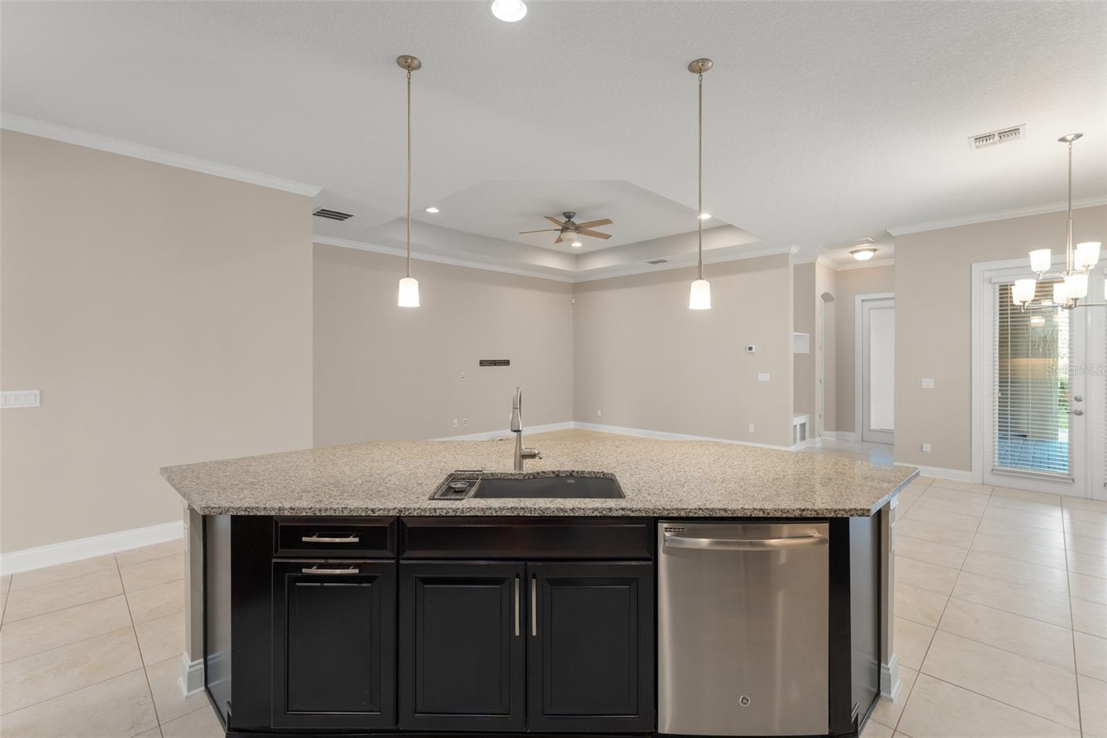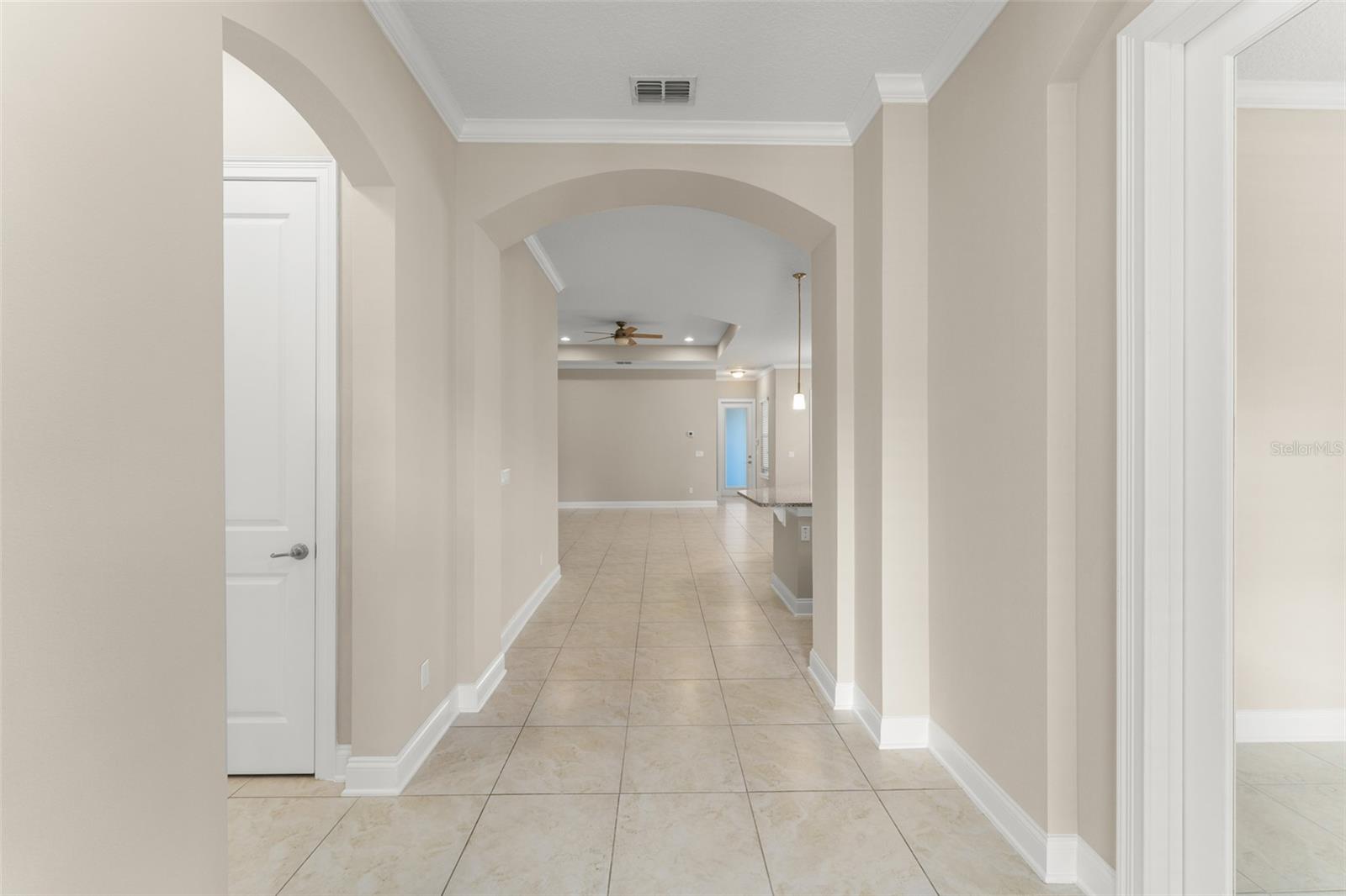 Located in the heart of Laureate Park just minutes from Lake Nona Town Center, this stunning David Weekley home (Fogel II floorplan), built in 2017, offers 3 bedrooms plus a bonus room and 2.5 bathrooms in a well-designed living space. The home faces a peaceful greenspace, providing a serene front yard and added privacy, perfect for enjoying your morning coffee on the spacious pavered front porch while overlooking the open lawn or watching your pets play. Inside, you’re greeted by a bright open-concept layout with ceramic tile flooring throughout, where the kitchen, living, and dining areas flow seamlessly together. A set of double French doors off the foyer reveals a versatile bonus room ideal as a home office or an extra bedroom. Two comfortable guest bedrooms share their own wing at the front of the home along with a full bathroom (tub/shower combo) and a flexible retreat space perfect as a playroom, media room, or second office, while a convenient half bath is tucked off the hallway for guests. The gourmet kitchen overlooks the living and dining areas and boasts 42-inch solid wood espresso cabinetry, granite countertops, a subway tile backsplash, stainless steel appliances (including double ovens and a range hood), and a large pantry, a chef’s dream that makes entertaining a delight. Toward the rear of the home, the spacious primary suite is tucked away for privacy, featuring a soaring tray ceiling with plenty of room for a king-size bed. Its en-suite bathroom offers a dual-sink vanity, a large walk-in shower with a rainfall showerhead and glass enclosure, a private water closet, and an enormous walk-in closet to accommodate the grandest wardrobe. A dedicated laundry room is accessible from both the living area and the primary bathroom for added convenience. Stepping outside, you’ll find a covered lanai with pavers and ceiling fans, an inviting outdoor living space perfect for relaxing or even an outdoor kitchen, that connects to the attached three-car garage. As a resident of Laureate Park, you’ll enjoy fantastic community amenities, including a resort-style aquatic center with multiple pools, a state-of-the-art fitness center, numerous parks and playgrounds, and miles of walking/biking trails. The community’s own Canvas Restaurant & Market is just a short walk away, and you’re only minutes from the Lake Nona Town Center’s high-end restaurants, shops, and array of year-round events. Top-rated schools (all A-rated) for every grade level are within a mile of the home, and with quick access to the 417 toll road and Orlando International Airport, commuting or traveling is a breeze. Come see why this exceptional home, offering the perfect blend of luxury, flexibility, and location, could be the perfect fit for you.