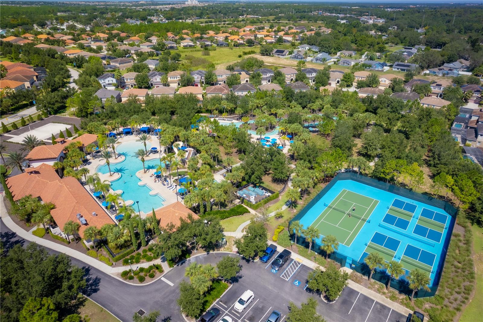 Welcome to a single-level retreat designed for effortless Florida living. This 3-bed, 2-bath home with a spacious two-car garage blends open, sun-filled interiors with the luxury finishes today’s buyers love. The airy kitchen—with a large center island—flows seamlessly into the living and dining areas, creating the perfect space for everyday life or entertaining friends.Thoughtful upgrades include 42-inch cabinetry, quartz countertops throughout, sleek slate appliances, and a full suite of energy-saving features: solar power, tankless gas water heater, and a gas range and dryer. The private owner’s suite offers a generous walk-in closet and a spa-inspired bath with dual vanities and an oversized shower. Step outside your door to enjoy the Solterra Springs lifestyle. Residents have access to a resort clubhouse with a lagoon-style pool, lazy river, water slide, fitness center, tennis courts, playground, and on-site café—vacation vibes all year round. Just minutes from I-4 and Highway 27, this home places you close to Walt Disney World, Universal Studios, and all of Orlando’s top dining, shopping, and entertainment. Davenport’s own festivals and community events add a welcoming small-town charm. Discover a home where modern design meets resort amenities—schedule your private showing today.