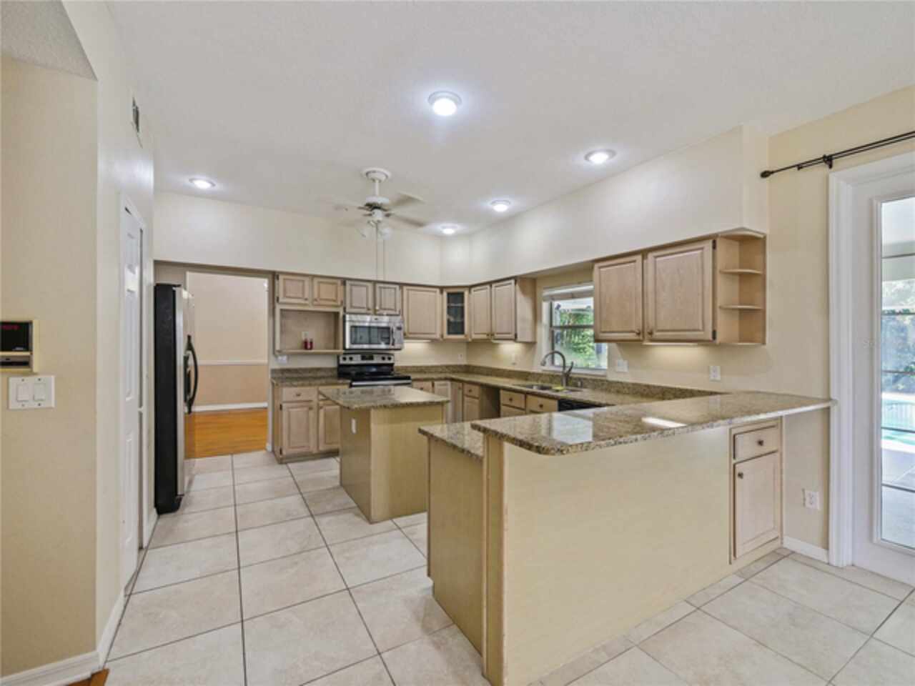 Beautiful home for rent with hardwood floors throughout—no carpet! 4 bedrooms plus office/den, family room, and formal living/dining combo. Spacious kitchen with large island, granite counters, stainless steel appliances, breakfast bar, and dining nook. Opens to a big family room and pool bath. Upstairs has 2 full baths, plus guest half bath downstairs. Screened pool with large covered patio. Extra-wide driveway fits up to 6 cars. Located near UCF and Research Park in a quiet neighborhood with mature trees and space between homes. Community features park, pool, tennis, basketball, and walking paths.