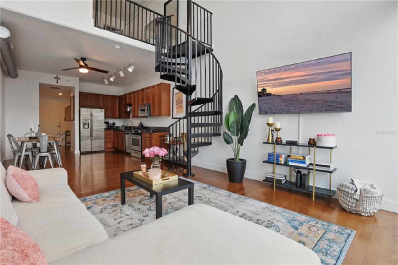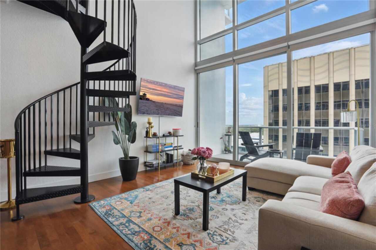 AVAILABLE FOR IMMEDIATE OCCUPANCY! FULLY FURNISHED! Welcome to The Vue, one of Orlando’s premier luxury high-rise residences, offering urban living with breathtaking views and world-class amenities. Nestled in the heart of downtown Orlando, this stunning 12th floor 1-bedroom, 1.5-bathroom loft-style condominium invites you to experience elevated city living with panoramic vistas of the skyline and the iconic Lake Eola. Step inside and be captivated by the dramatic 20 foot ceilings and expansive floor-to-ceiling windows that flood the space with natural light, showcasing the vibrant cityscape and serene lake below. The main floor features an open-concept layout with a spacious living area, dining space, and a sleek, kitchen that’s ideal for entertaining. A stylish half-bathroom adds convenience for guests and enhances the overall flow of the home. Ascending the industrial style spiral staircase that brings you to the private upper-level retreat, where you’ll find a generously sized primary bedroom, a well-appointed en-suite bathroom, and a spacious walk-in closet. Every element of this home has been thoughtfully designed to maximize comfort, style, and functionality. This residence includes one dedicated parking space in The Vue’s secure parking garage. The building offers exceptional amenities, including 24-hour security and concierge service, valet parking for guests, a resort-style swimming pool with an expansive sun deck, a state-of-the-art fitness center, as well as exclusive access to a clubhouse, tennis courts, a private screening room, among other ammities. Live just steps from Orlando’s top dining, entertainment, shopping destinations, and the tranquil walking trails of Lake Eola Park. Whether you’re drawn to the energy of downtown or the calm of a lakeside view, this exceptional property offers the best of both worlds in one of the city’s most coveted addresses. Don’t miss your opportunity to live in a piece of Orlando luxury—contact us today to schedule your private tour