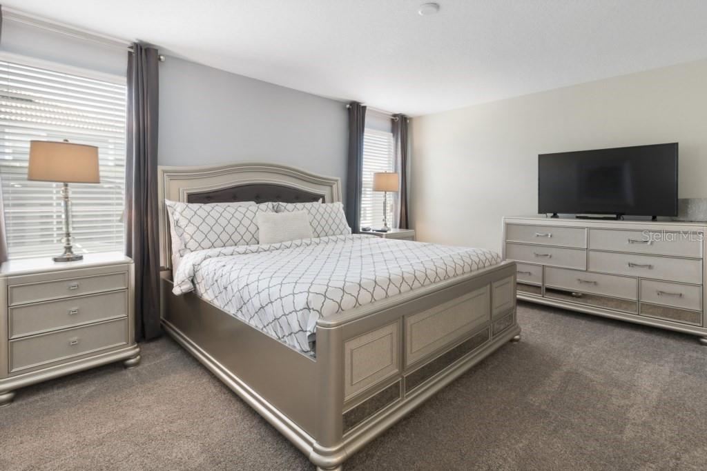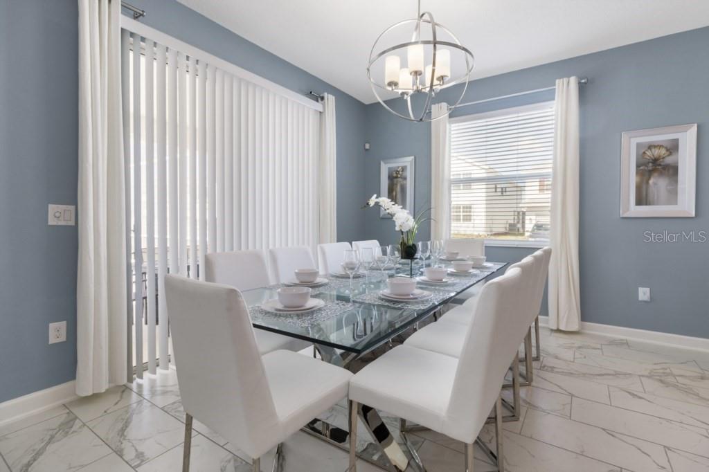 Beautifully set on a desirable corner lot, this stunning and impeccably maintained 6-bedroom, 5-bath pool home offers a bright, open layout with upgraded finishes including quartz countertops, tiled backsplash, oversized tile flooring, and a large kitchen island. A main-floor bedroom and bath, spacious upstairs loft, and generous living areas provide comfort for large families or vacation guests. Enjoy outdoor dining on the shaded lanai overlooking the sunny pool and spa. Ideally located near the ChampionsGate Clubhouse, residents have access to resort-style amenities such as a large pool with cabanas, splash pad, lazy river, water slides, fitness center, theater, sports courts, and dining options—all just minutes from Disney. The Property will be rented FULLY FURNISHED.