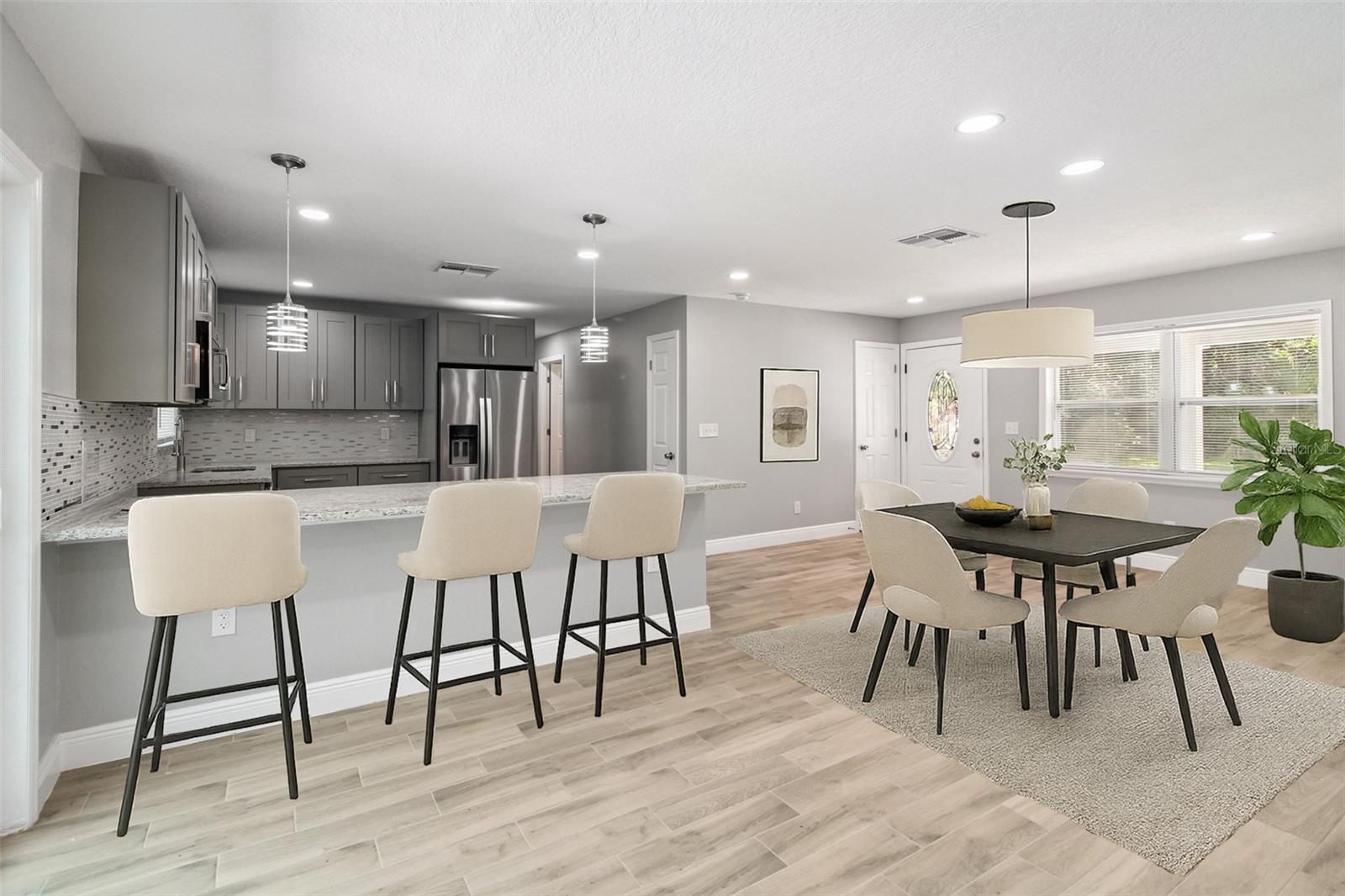 One or more photo(s) has been virtually staged. FOR RENT: One or more photo(s) has been virtually staged. Fully Renovated 5-Bedroom Pool Home with Dual Master Suites on a Cul-de-Sac! This 2025-completely remodeled 5-bed, 3-bath home in desirable Dover Estates has been upgraded to current code with permits, offering peace of mind and style. Featuring two spacious master suites—perfect for multi-generational living—this home boasts a designer chef’s kitchen with shaker soft-close cabinets, granite countertops, and an open layout ideal for entertaining. Major updates include new underground plumbing, new electrical, new AC & ductwork, new roof, windows, doors, and updated stucco exterior. Wood-look porcelain tile runs throughout the home, and all bathrooms are fully remodeled with modern finishes. Enjoy a resurfaced pool with new equipment, covered patio, and fenced yard for year-round Florida living. Conveniently located near Downtown Orlando, MCO Airport, major highways, shopping, dining, and theme parks. Truly move-in ready!
