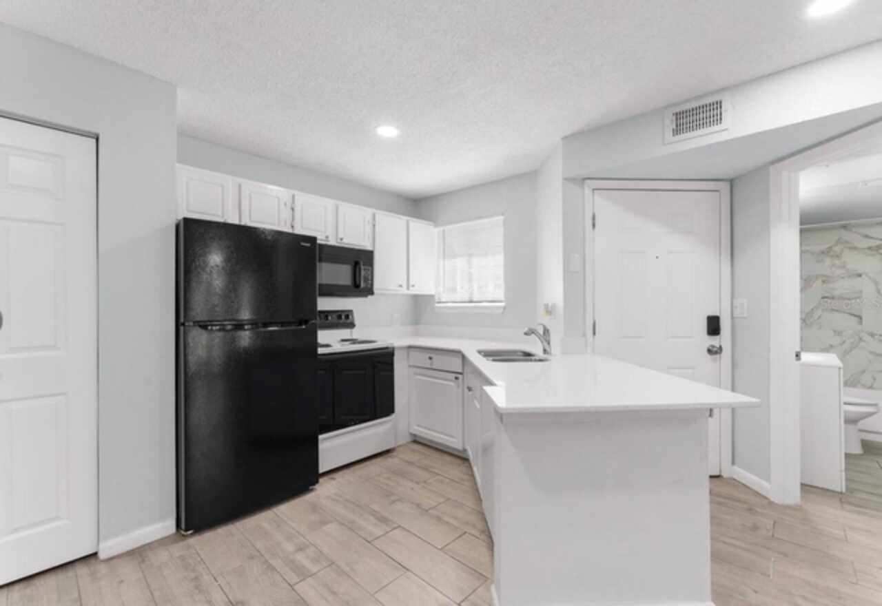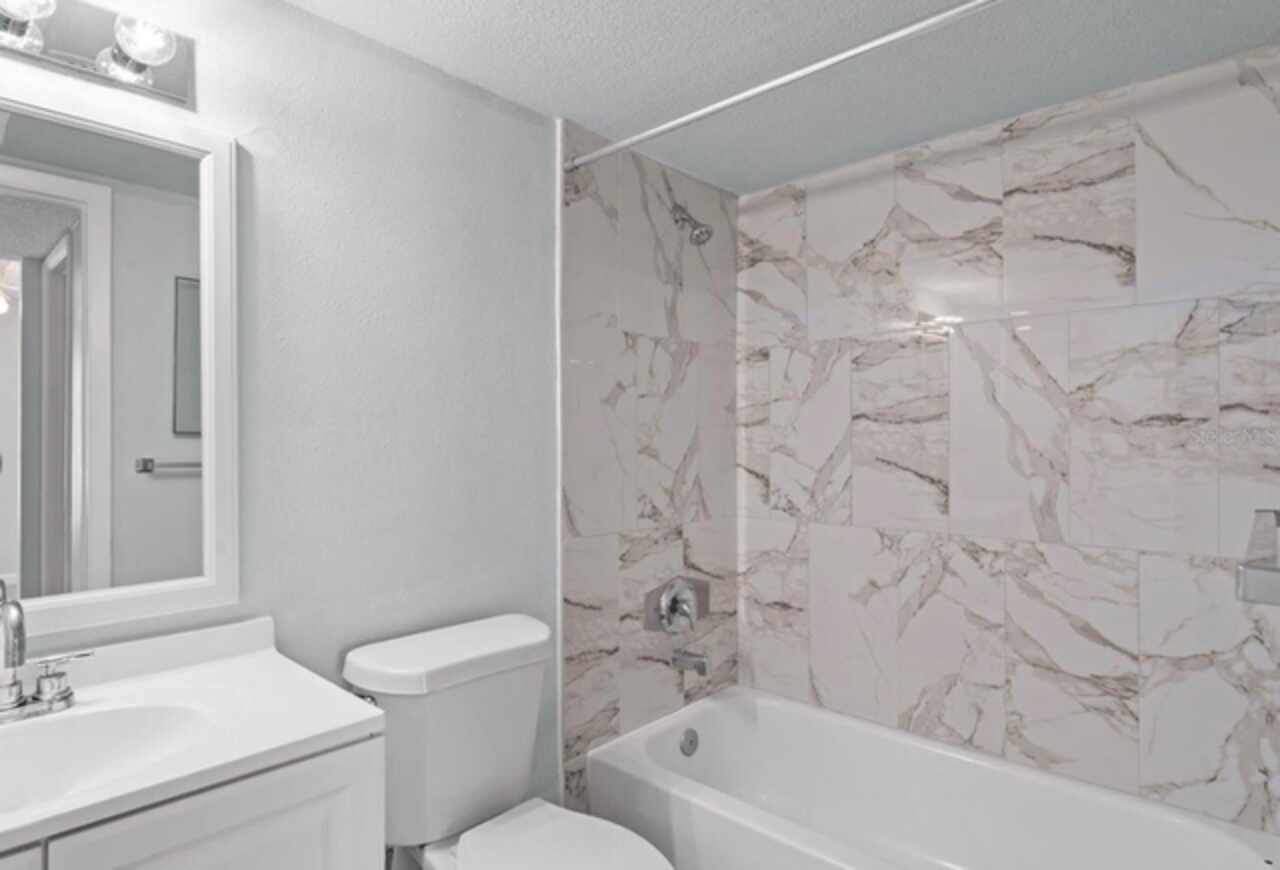 Recently Remodeled & Move-In Ready. This bright 1-bed, 1-bath condo at The Plaza at Millenium overlooks the community pool, blending low-maintenance living with a highly desirable central Orlando address near The Mall at Millenia and Universal Studios. Open-concept layout with durable tile floors throughout Gourmet kitchen featuring sleek quartz countertops. Spacious living room flowing onto a screened patio—ideal for morning coffee or evening relaxation overlooking the pool. Oversized bedroom with a walk-in closet. Spa-inspired bathroom featuring new vanity and marble-tiled shower/tub. HOA dues include water, sewer, and trash.