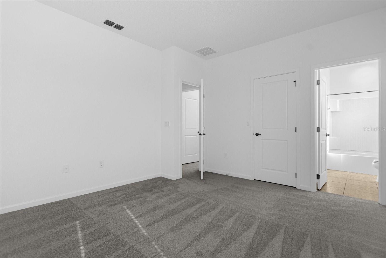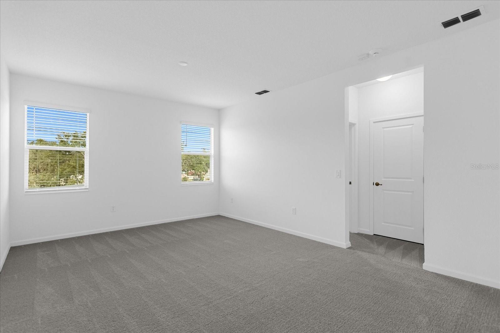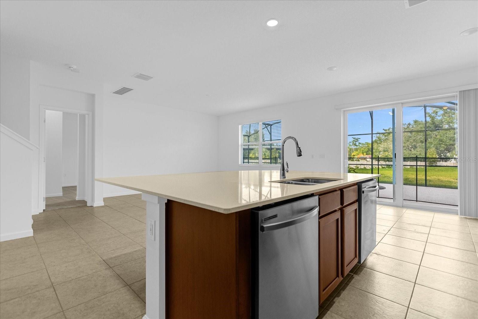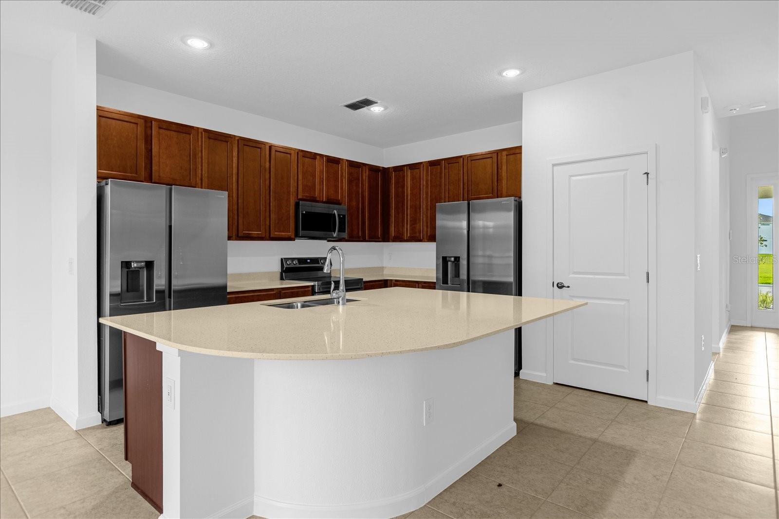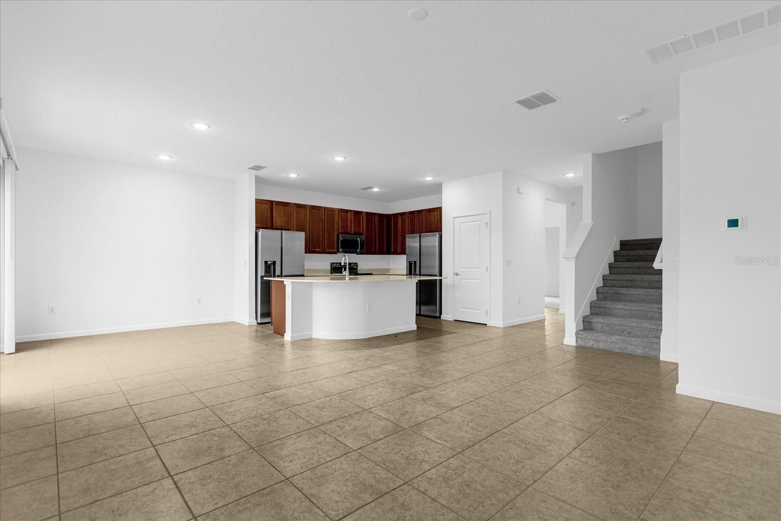 Kitchen/Family Room Combo, Primary Bedroom Main Floor, Solid Surface Counters, Solid Wood Cabinets, Thermostat