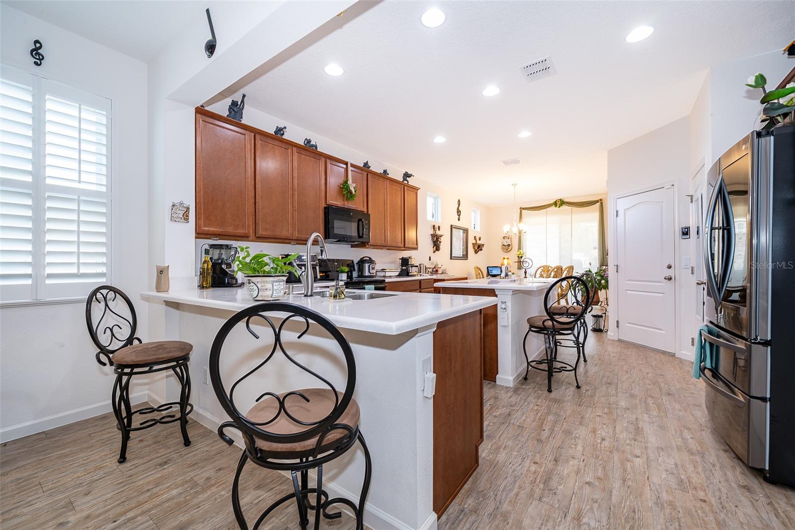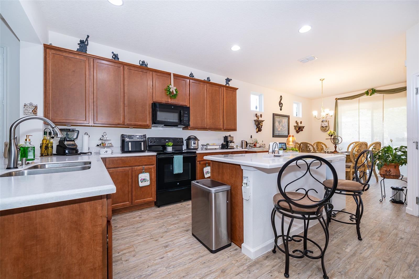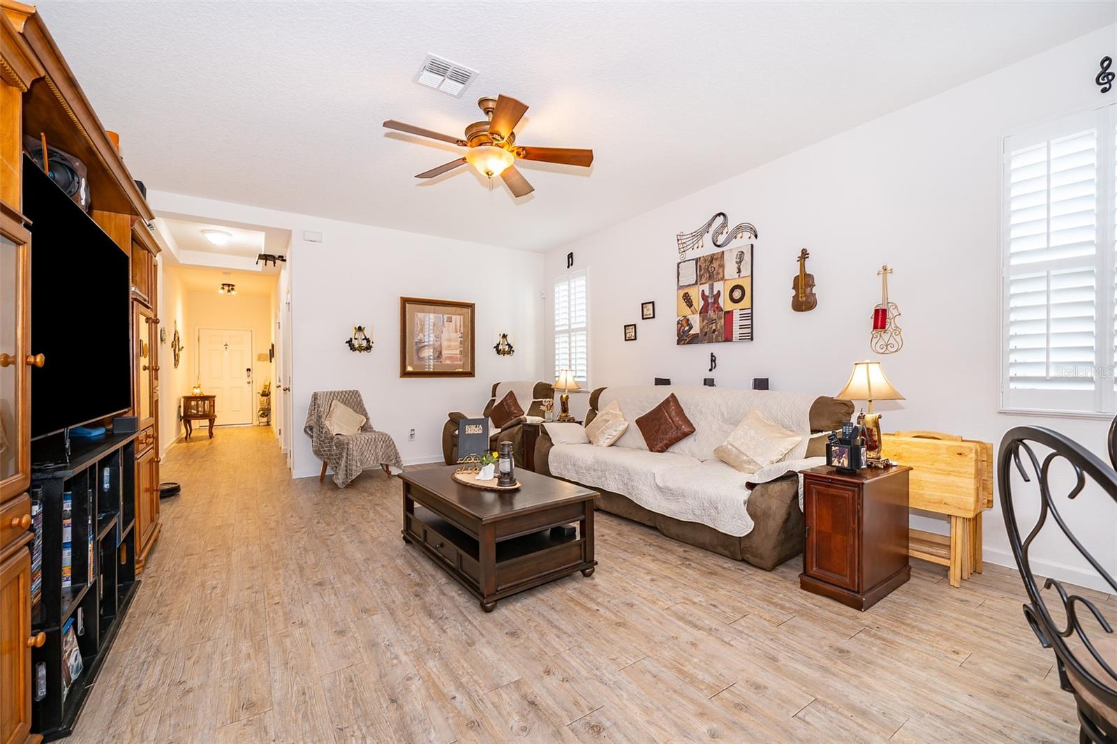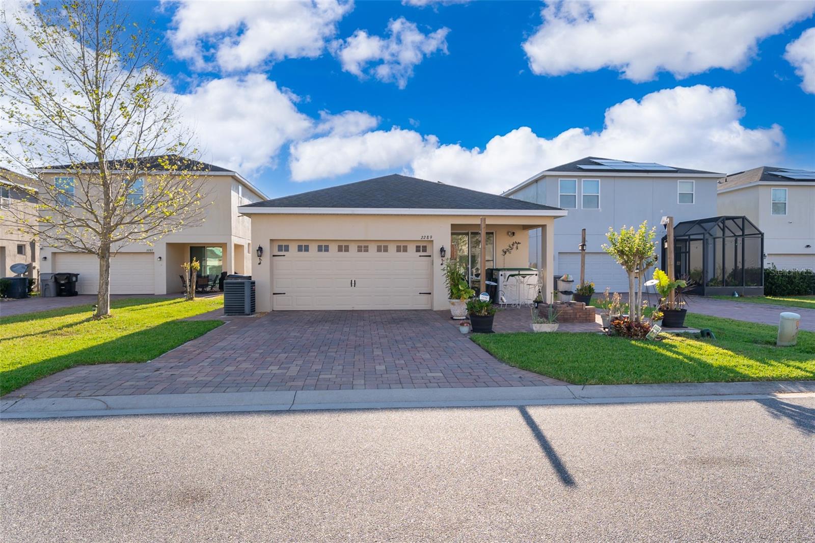 Discover this charming residence available for rent in Apopka's Silver Oak Community! This beautifully designed "Aventura" model by Surrey Homes features a welcoming front porch, three bedrooms, and two bathrooms, all arranged in an excellent floor plan. The attached two-car garage adds convenience, and the solar panels enhance energy efficiency, leading to lower monthly electric bills. An extended rear patio provides a spacious outdoor area perfect for entertaining guests. Natural light and beautiful flooring flood the living spaces, while the open layout facilitates easy entertaining between the kitchen, dining room, and great room. The expansive primary bedroom includes a well-sized bathroom with a walk-in shower, a quartz dual-sink vanity, and a spacious closet. Both the primary and secondary bedrooms feature walk-in closets, and the guest bathroom is equipped with a tub/shower combination and a quartz vanity. The ample kitchen is fitted with a large center island topped with quartz countertops. The Homeowners' Association (HOA) grants access to community amenities, including a pool, dog park, playground, and clubhouse. This centrally located community offers easy access to major highways, downtown Winter Garden, the West Orange Trail, and excellent shopping and dining options.