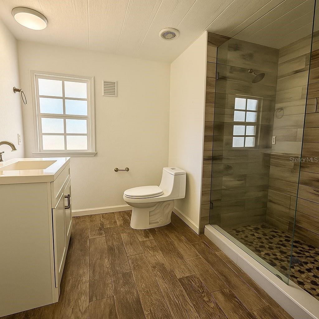Discover a truly unique property nestled on nearly half an acre, combining modern comfort with country charm. This beautifully updated home features three full-size bedrooms plus an additional room perfect for an office, nursery, or guest space. Inside, enjoy wood-look tile flooring throughout the main areas and plush carpeting in the bedrooms for added warmth. The modern kitchen offers contemporary finishes and functionality, opening to bright living spaces ideal for family gatherings or entertaining. Step outside to a wrap-around deck and rear balcony, overlooking your private backyard retreat. Outdoors, the property offers ample parking for an RV or boat, a small pond perfect for fish or aquaponics, a garden area ready for crops, and a chicken coop for those seeking a self-sustaining lifestyle. With well and septic, there’s no water bill, keeping monthly costs low. Additional features include updated bathrooms, an enclosed patio area, and a basement for extra storage—a rare find in Florida!
