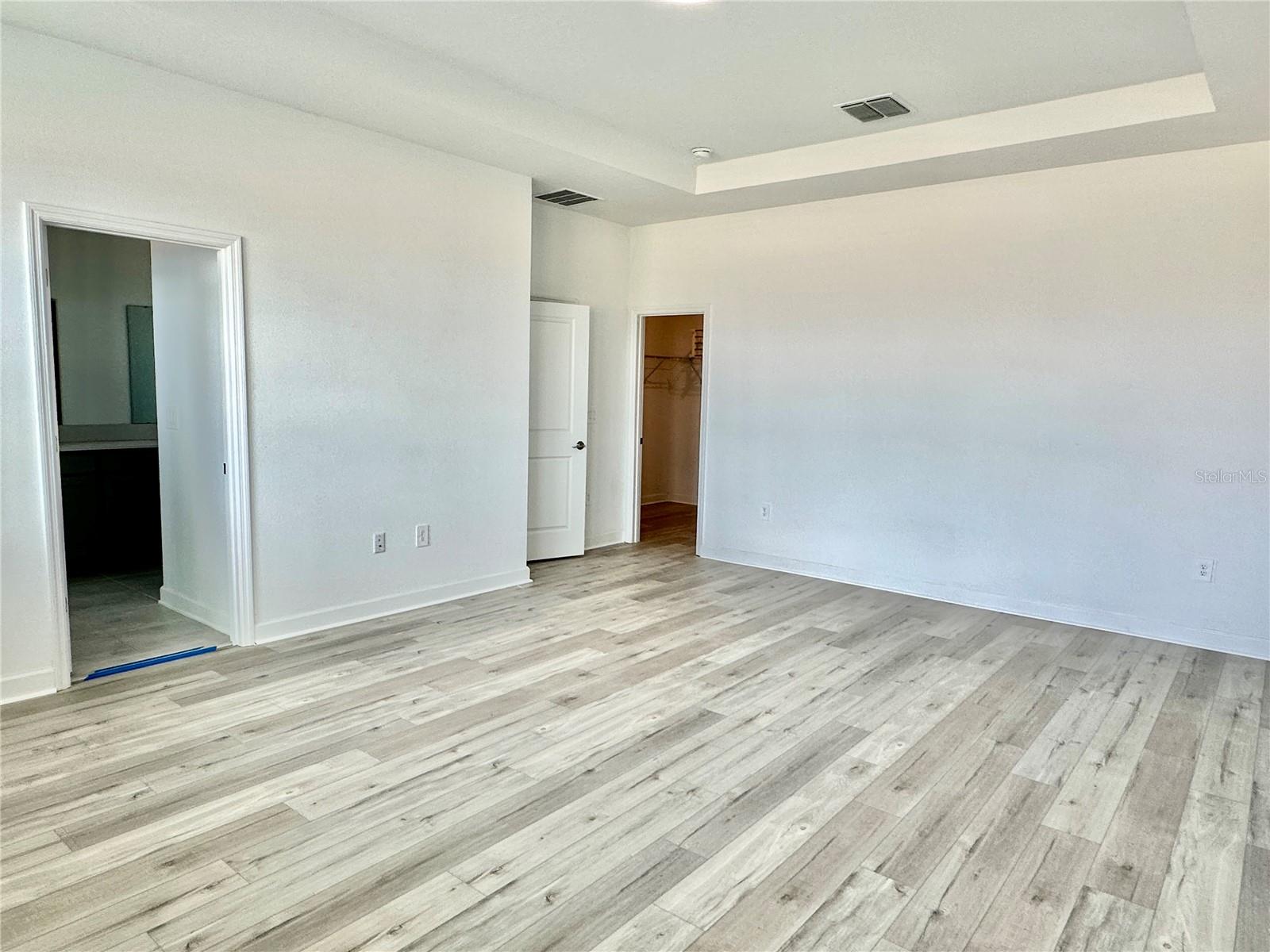 High Ceilings, Primary Bedroom Main Floor, Solid Surface Counters, Solid Wood Cabinets, Split Bedroom, Tray Ceiling(s), Walk-In Closet(s), Window Treatments
