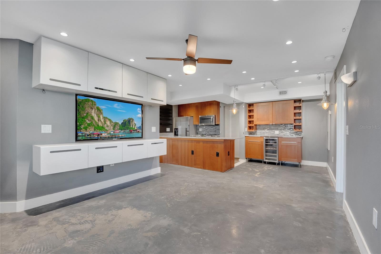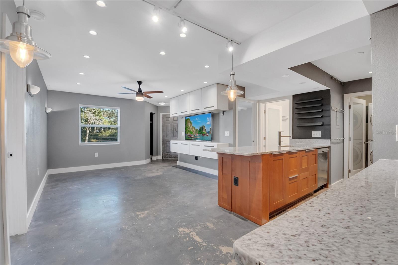 Ceiling Fans(s), Dry Bar, Eat-in Kitchen, Living Room/Dining Room Combo, Open Floorplan, Solid Surface Counters, Solid Wood Cabinets, Thermostat, Walk-In Closet(s), Wet Bar