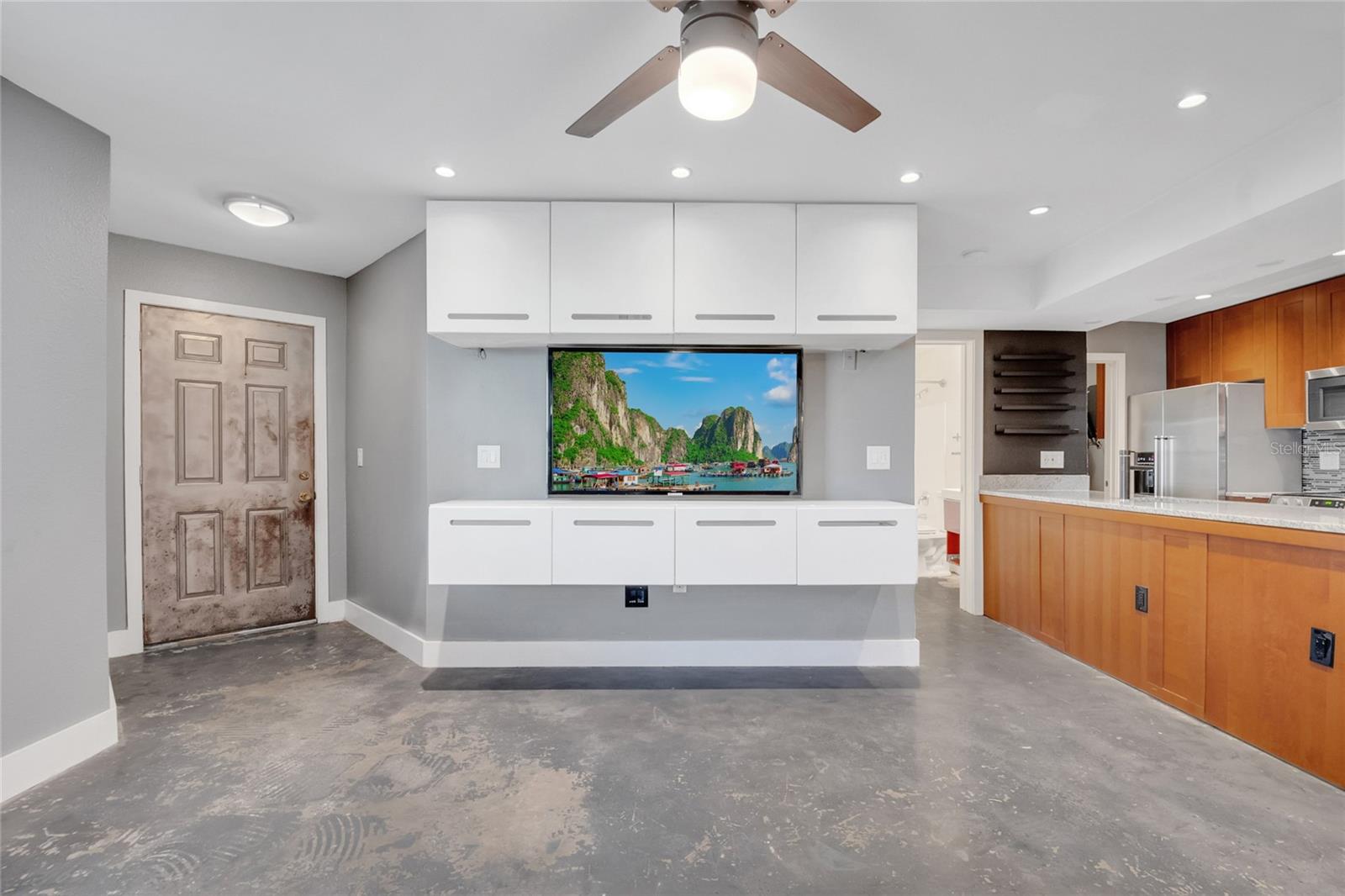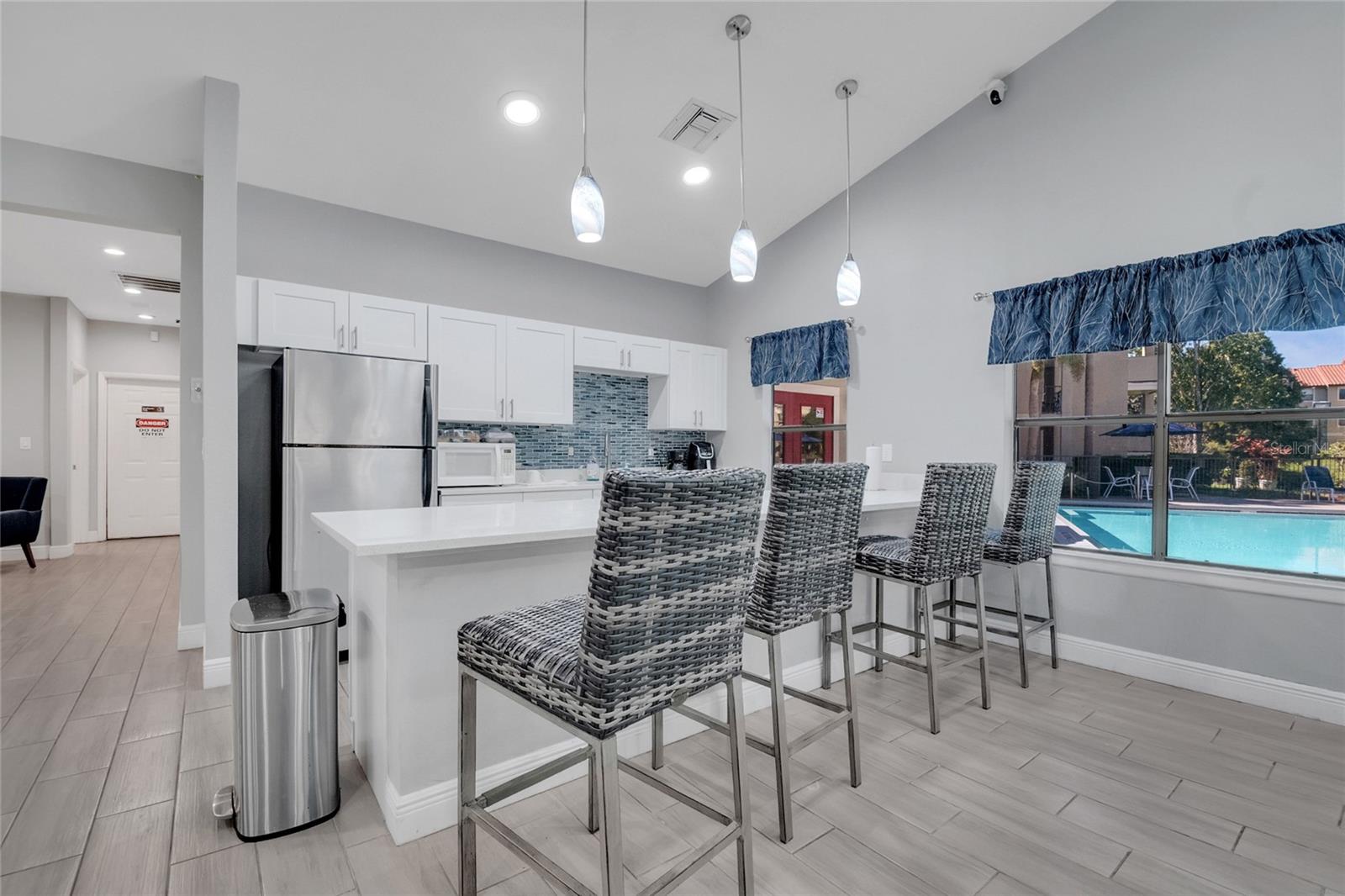 LOCATION, LOCATION!! Near Celebration!! This beautiful FIRST FLOOR, MODERN CONDOMINIUM, features 2 bedrooms and 2 bathrooms, FEATURES A CONTEMPORARY KITCHEN, BUILT IN WINE FRIDGE, HALOGEN LIGHTING. The bathroom offer LUXURIOUS SPA-LIKE EXPERIENCE, featuring a MULTI FUNCTION SHOWER SYSTEM with multiple jets. EPOXY FLOORING THROUGHOUT for easy maintenance. The kitchen is equipped with stainless steel appliances. MOVE IN READY!! The living space is enhanced with CUSTON BUILT CABINETS and come FULLY EQUIPPED WITH 2 MOUNTED FLAT SCREEN TVs, included with the unit. Conveniently located just minutes from CELEBRATION, celebration Hospital. Only 15 minutes from Walt Disney World, this home offers both comfort and proximity to the area’s top attractions. The community features fantastic amenities, including a SALTWATER POOL, FITNESS CENTER, PLAYGROUND, and a clubhouse perfect for gatherings and events. Easy access to major highways 417, I-4 , 192 , shopping malls, outlets, and just 40 minutes from Orlando International Airport. Don’t miss the opportunity to live in this prime location! RENT INCLUDED WATER.