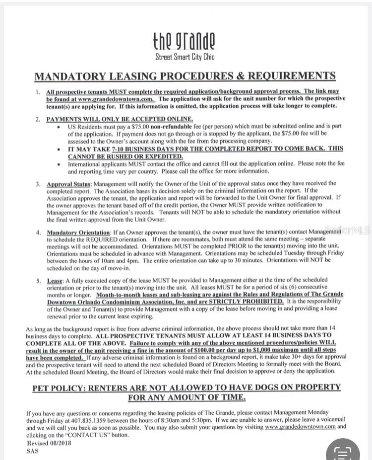 Welcome to The Grande, this one bedroom is spacious, and a new tub and tile was installed within the last year. The recreation facilities can be used by tenants. The pool has bbq area for use, lounge chairs and bathroom with shower. There is guest parking available to use for visitors. You can walk to neighborhood restaurants, Dr. Phillips Center, the library, courthouse, Lake Eola, etc. You have acess to the I-4 and the 408.