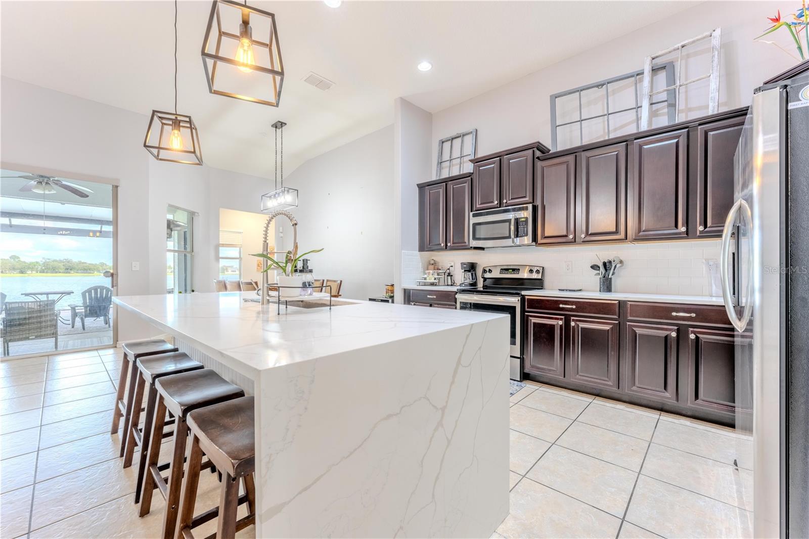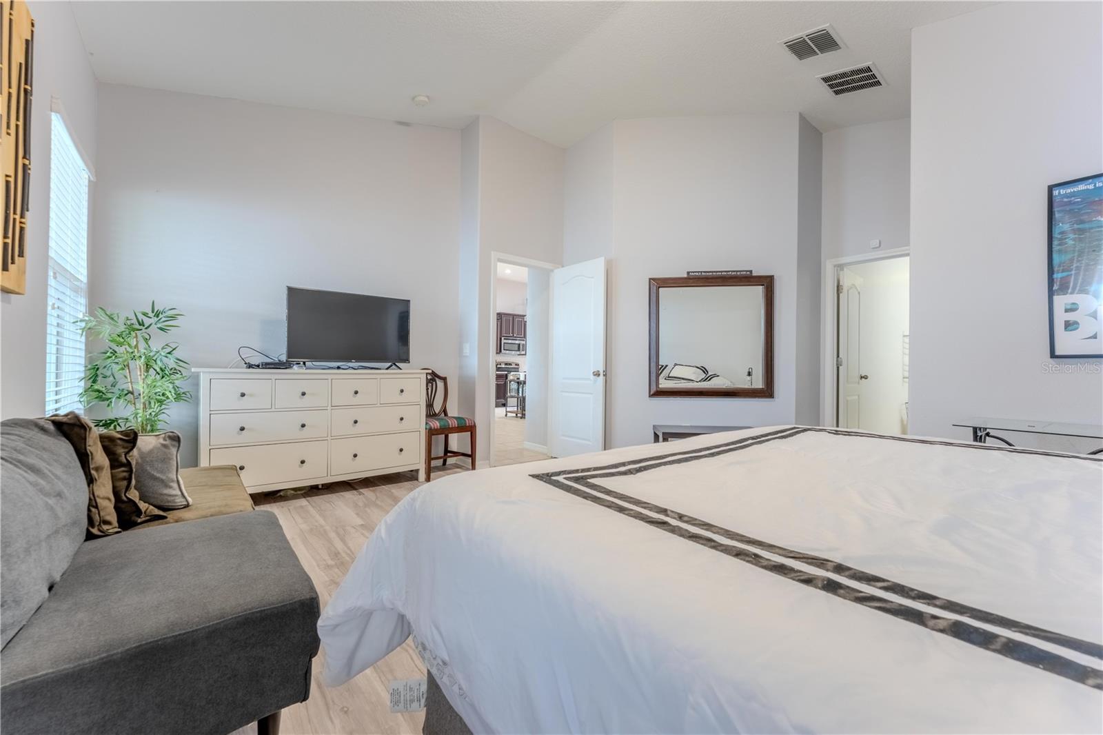 FULLY FURNISHED (turney Key) and move-in ready, this beautiful single-story 4 bedrooms and 3 baths lakefront home in Wyndham Lakes combines comfort, modern upgrades, and the best of Florida living. The open floor plan features a modern kitchen with quartz countertops, brand-new stainless steel appliances, and 42” wood cabinets. Bathrooms have matching quartz finishes, and the spacious master suite includes a walk-in closet, dual-sink vanity, soaking tub, and glass-enclosed shower. A 3-car garage provides extra convenience. This home is automation-ready, with internet-connected lights, garage, HVAC, alarm, front door lock, and security system include 3 cameras (2 in back, 1 in front) and a Ring doorbell. Relax or entertain on the newly built screened-in lanai with paved patio overlooking the lake. Residents enjoy community amenities including a clubhouse, fitness center, resort-style pool, tennis and basketball courts, and playground. Prime location: 5 minutes to Lake Nona Medical City, 10 minutes to Orlando International Airport, 20 minutes to Disney and Universal, 45 minutes to Cocoa Beach. Call now for your private showing.
