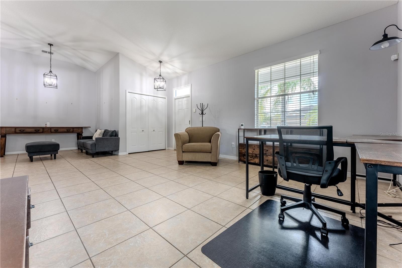 Eat-in Kitchen, Kitchen/Family Room Combo, Living Room/Dining Room Combo, Primary Bedroom Main Floor, Solid Surface Counters, Thermostat, Window Treatments
