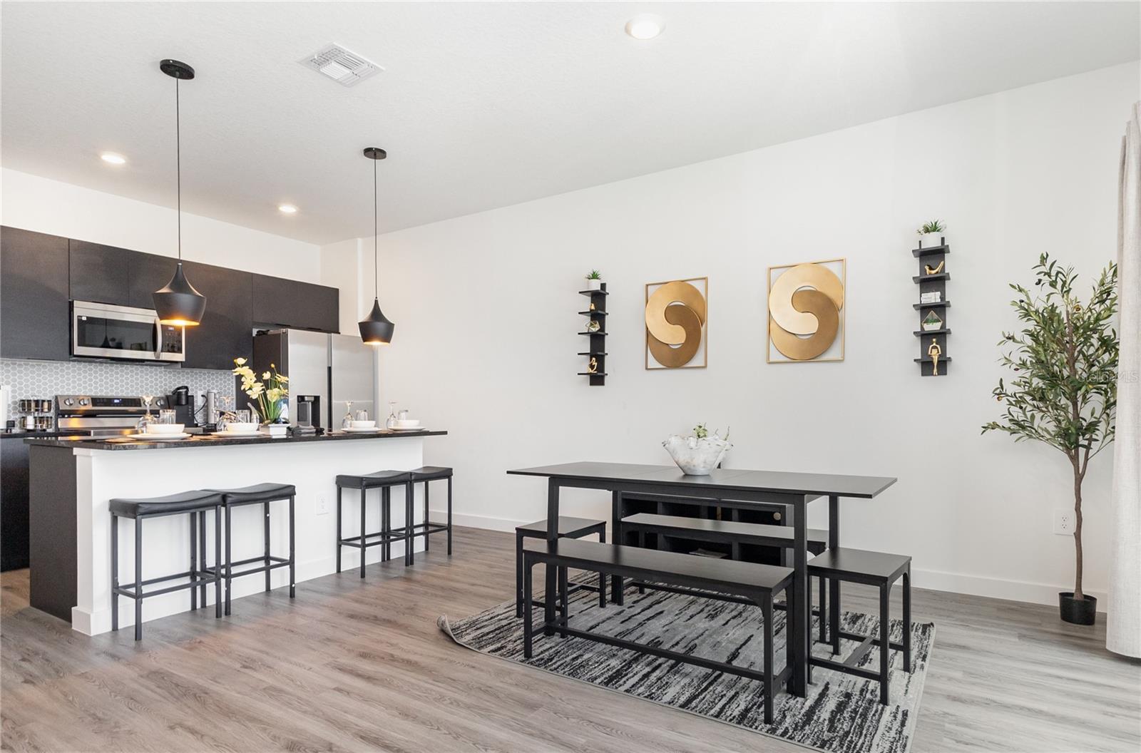 Welcome to this modern 3-bedroom, 3-bathroom townhome For Lease in a beautifully maintained gated community in Kissimmee, just minutes from Disney’s world-class attractions. Built in 2024, this home offers contemporary style, smart features, and impressive resort amenities. Smart home features such as a smart lock and Ring camera offer added ease and peace of mind. Step inside to a bright, open floor plan with wood-look vinyl flooring throughout the main living areas. The kitchen and dining combo creates a seamless flow for cooking and entertaining, complete with new appliances and plenty of cabinet space. A charming front porch adds extra curb appeal and a welcoming place to relax. Upstairs, you’ll find the spacious primary bedroom with an attached bathroom and a generous walk-in closet. The home also includes an in-unit washer and dryer for everyday convenience.The community’s brand-new pool and clubhouse, adding even more value to this exceptional rental. Residents will enjoy the full suite of resort-style amenities, including an EV charging station, a meeting room with an electronic reservation system, a Wi-Fi café with co-working space, a summer kitchen, a community pool, and a fitness center. Ideally located near numerous shopping centers, dining options, golf courses, and recreational activities - and just a short drive to Disney Springs - this townhome delivers comfort, convenience, and the best of Central Florida living.