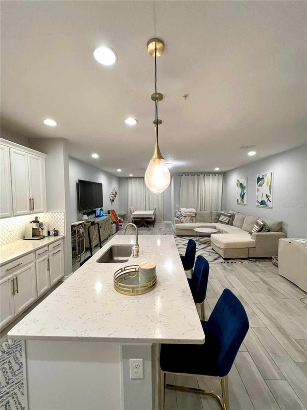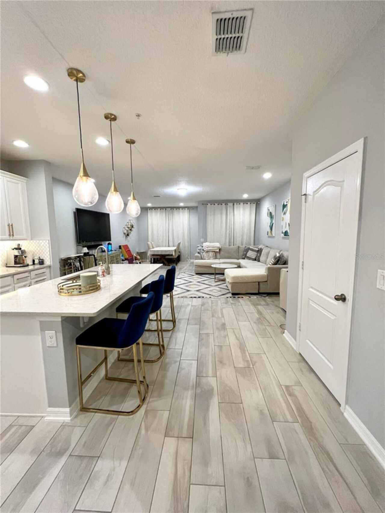 Welcome Home! This beautifully upgraded 3-bedroom, 2.5-bath townhome with a 1-car garage is move-in ready and packed with features you’ll love. Step into an open-concept floor plan with neutral tones and no carpet on the first floor. The modern kitchen boasts quartz countertops, stainless steel appliances, and overlooks the spacious living area, which opens to a screened-in back porch with a privacy screen on one side—perfect for relaxing or entertaining. Upstairs, you’ll find all three bedrooms, including a generously sized primary suite with a large walk-in closet and en-suite bathroom featuring dual sinks. The split floor plan adds privacy, and a loft area provides a flexible space ideal for a family room or home office. The two additional bedrooms share a full bathroom. Additional highlights include: Brick paver driveway, Gated community with community pool just steps from your front door. Zoned for highly rated A-rated schools, including gifted and charter programs Easy access to major routes including I-4 This home offers comfort, convenience, and style in a sought-after location. Don’t miss it!