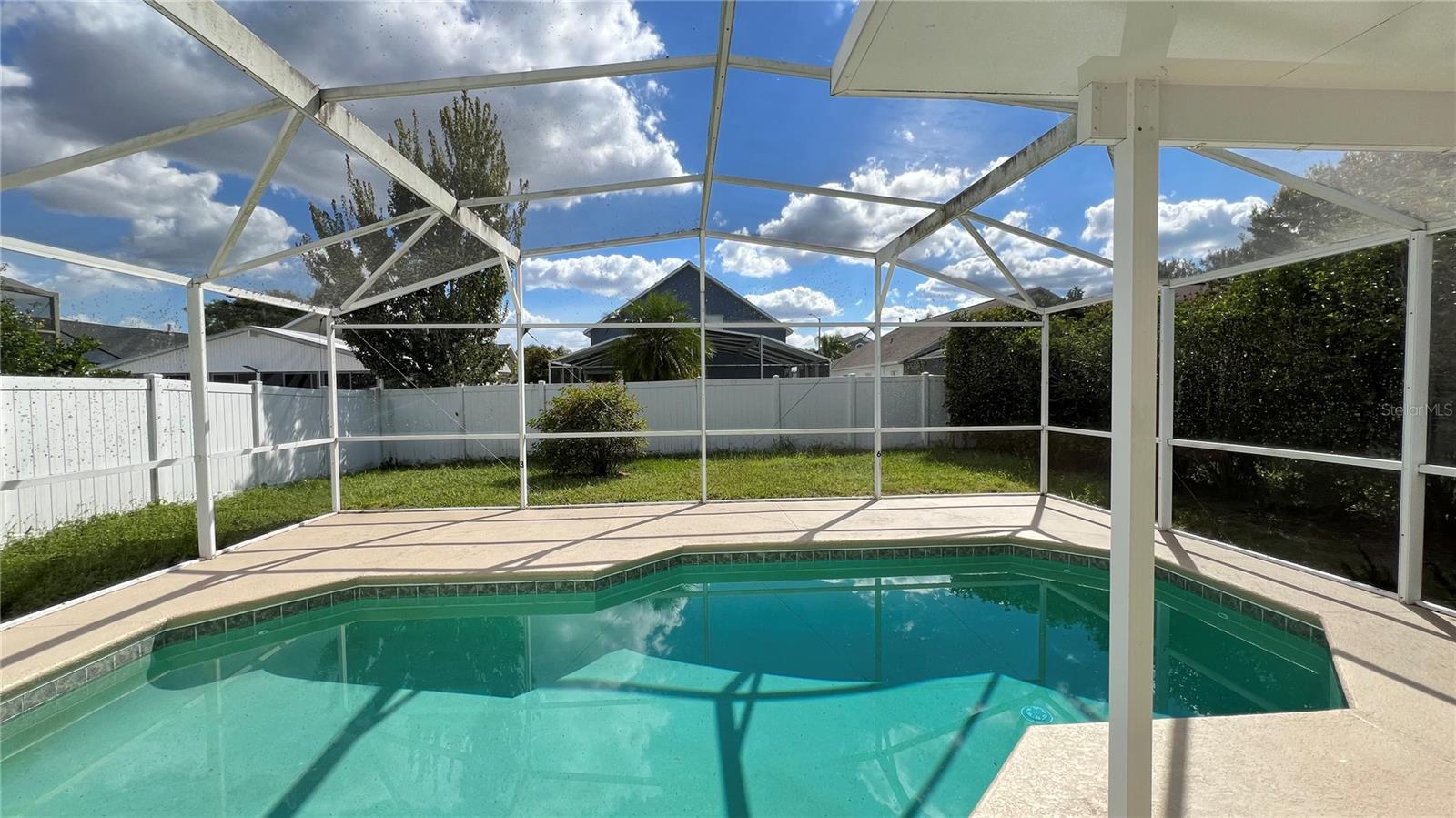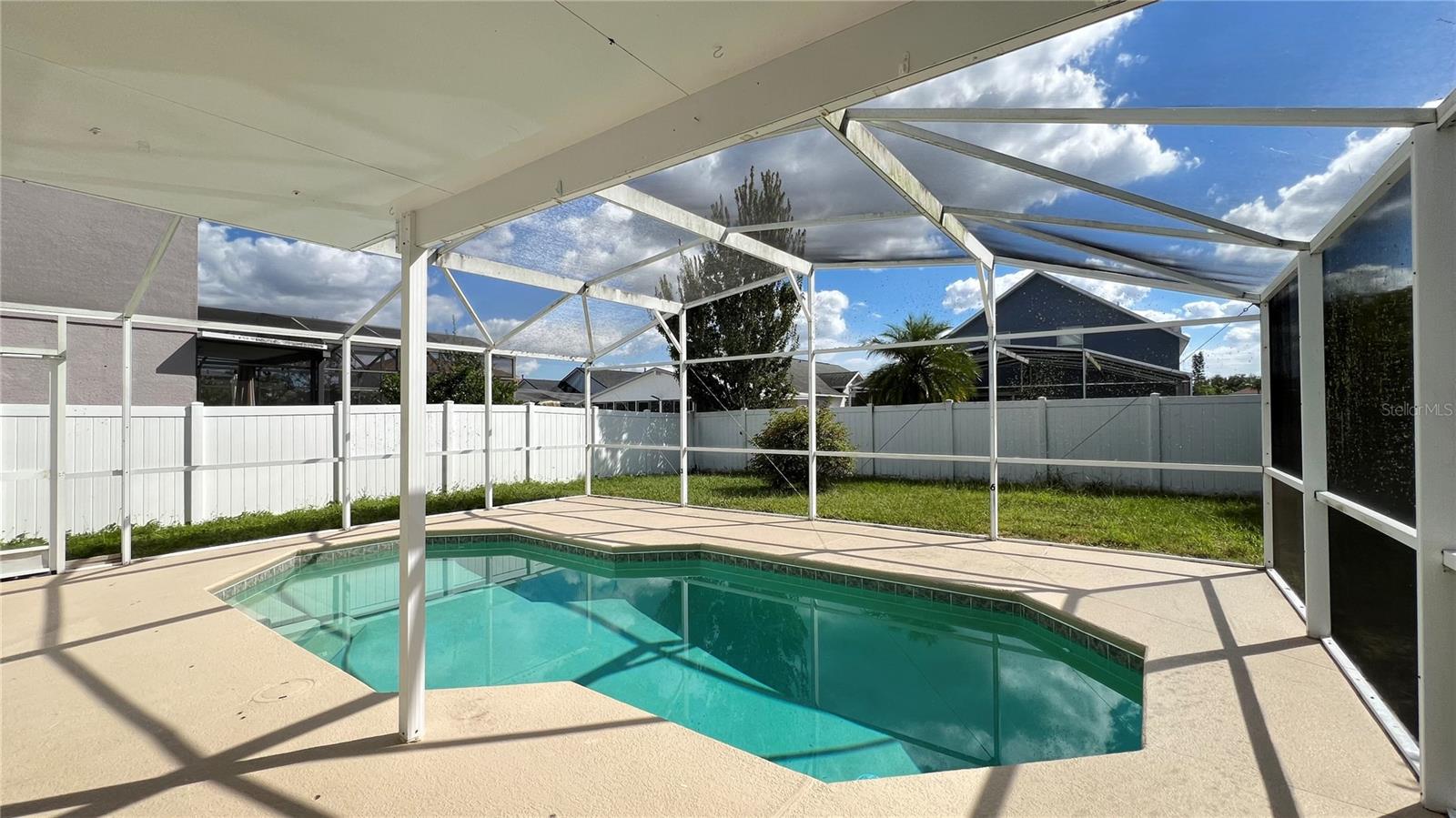 Cozy single-family pool home. This home has 4 bedrooms, 2.5 baths, with 1, 635 square feet of living area, a screened-in pool, and all appliances are included. Tile in common areas, carpet in all bedrooms . This home is located in Davenport, FL, in the community of Santa Cruz. Off Hwy 27, a few miles away from US Hwy. 192, approximately 10 miles to Disney and a shopping mall, and plenty of dining and entertainment attractions.