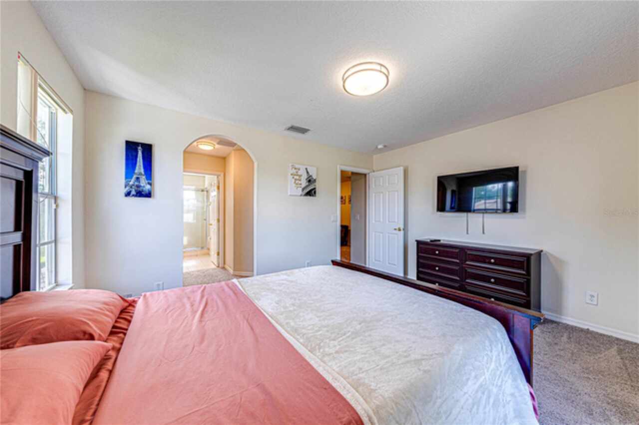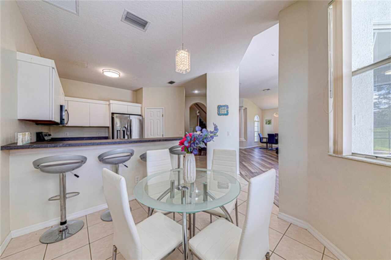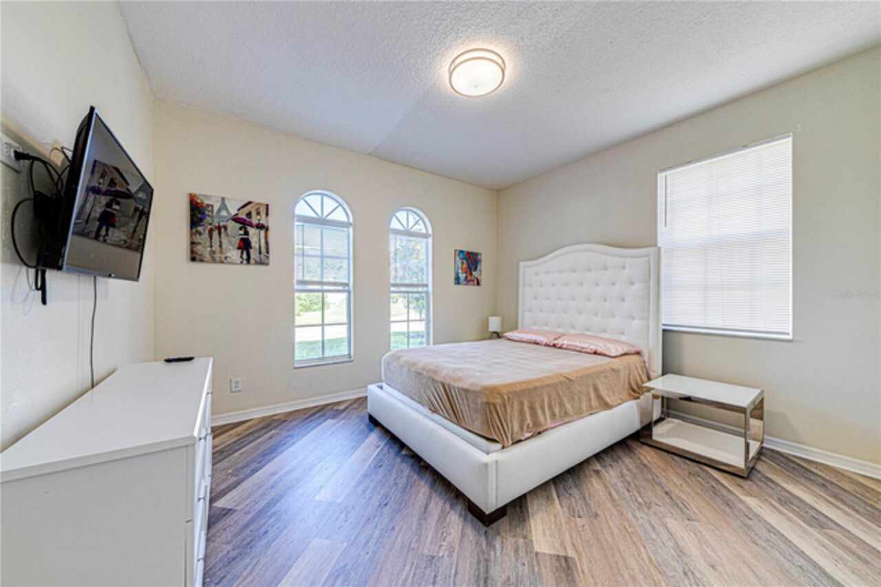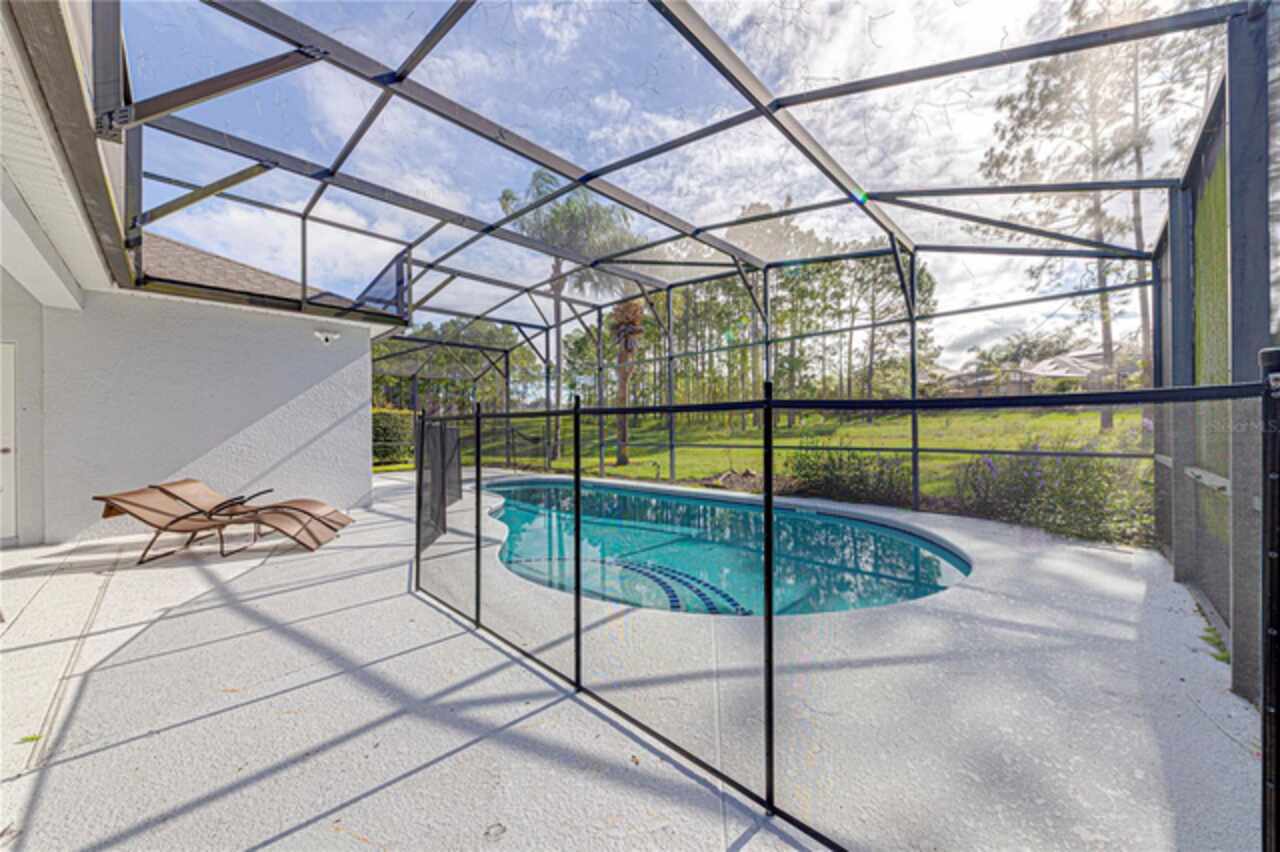 This spacious 6-bedroom, 4.5-bathroom home is located in the desirable community of Calabay Parc, less than 15 minutes from Disney World, shopping centers, and other major attractions. Recently updated with brand new waterproof luxury vinyl plank flooring on the first floor, new carpet upstairs, fresh paint, and a newer secondary AC unit, the home is ready for immediate move-in. Inside, a bright and open layout offers plenty of space to relax or entertain. The large living room flows seamlessly into the open kitchen and dining area, complete with a walk-in pantry, ample cabinetry, and generous counter space. The first-floor master suite features an en-suite bath with a separate shower for added comfort and privacy. Enjoy Florida living outdoors with a spacious screened deck and private pool, perfect for dining al fresco or unwinding after a long day. The community provides exterior landscaping and CCTV security for peace of mind. Conveniently located near major highways, shopping, and dining, this rental offers the perfect combination of comfort, space, and location. Schedule your showing today!