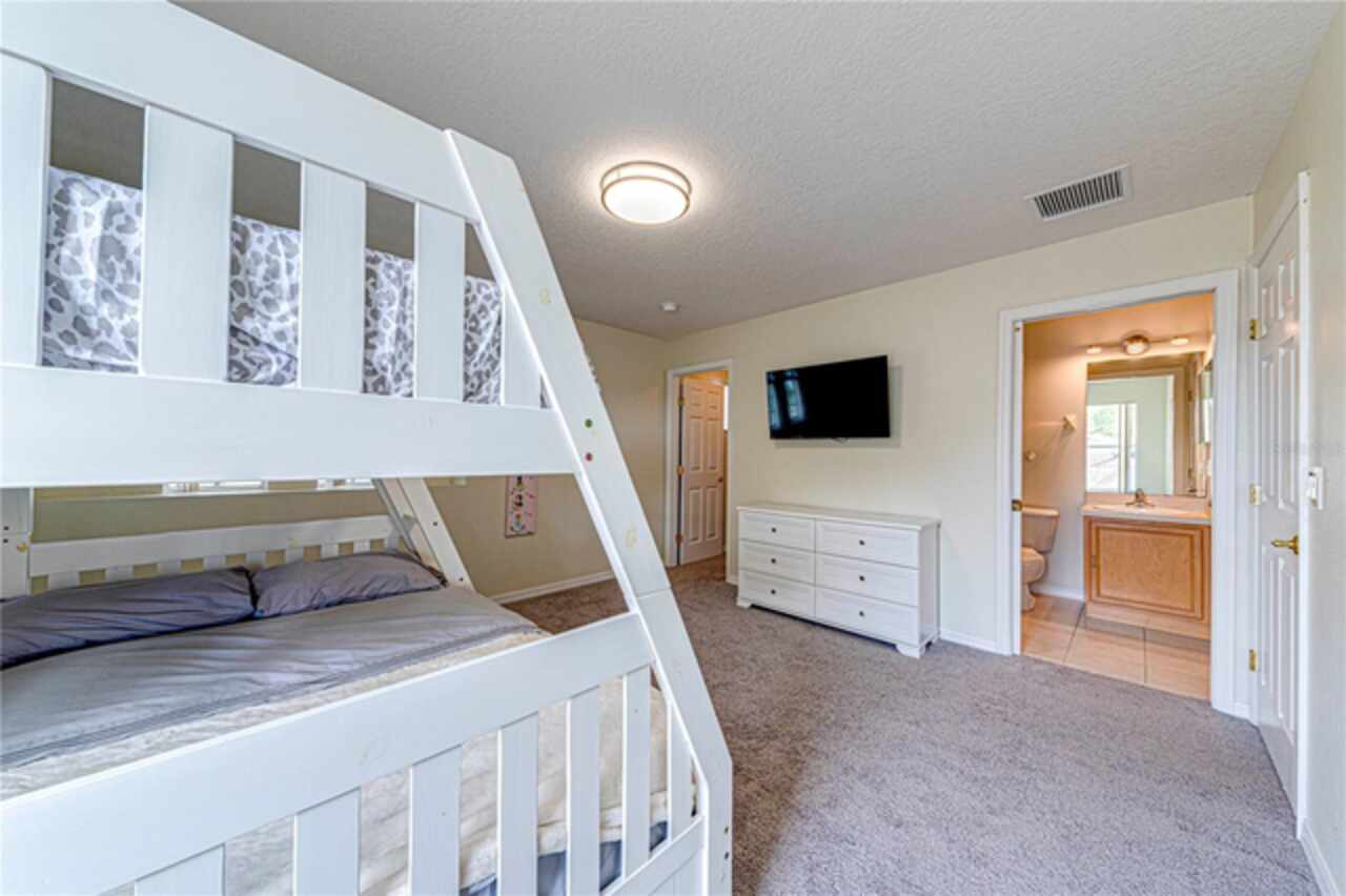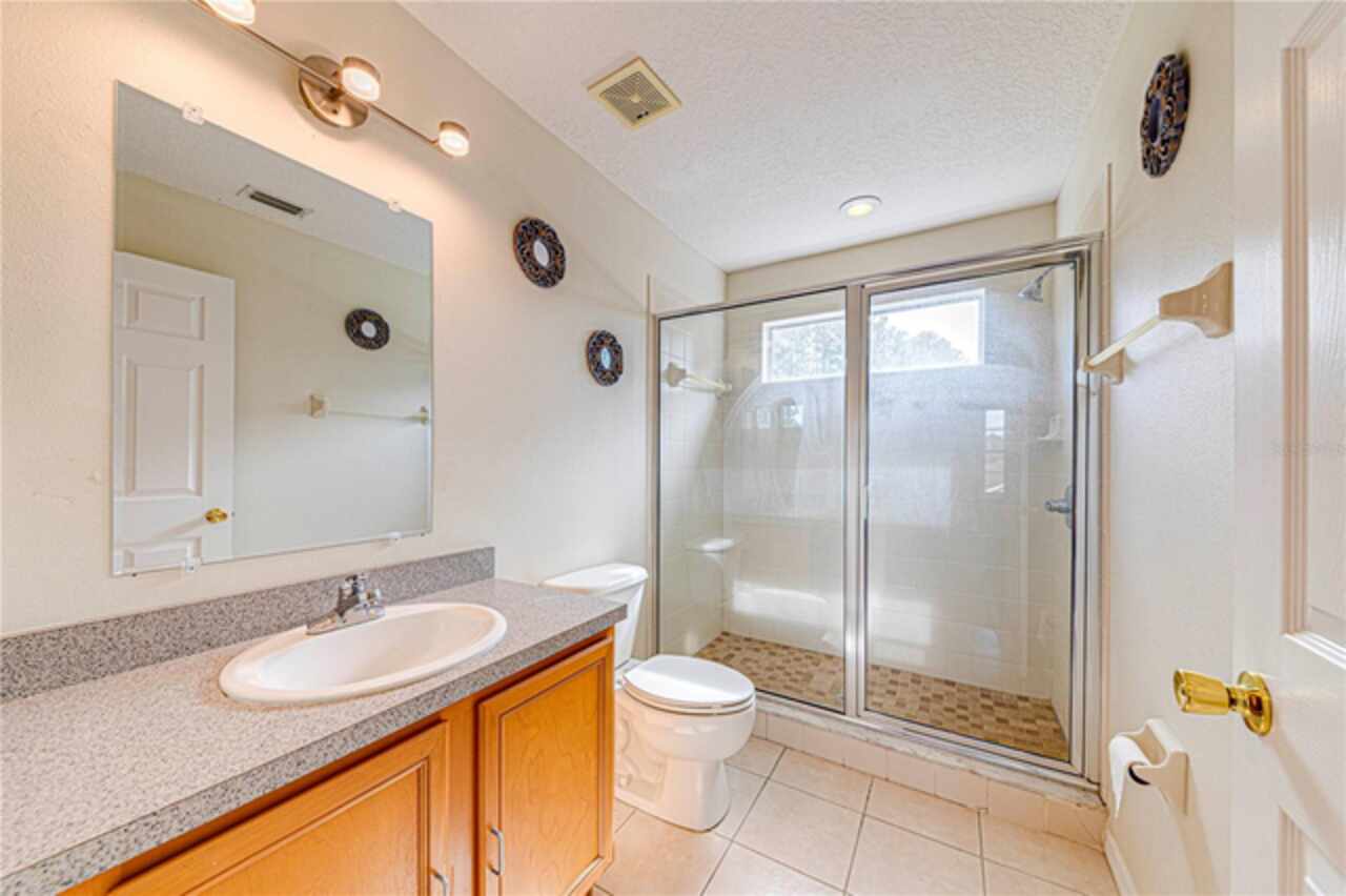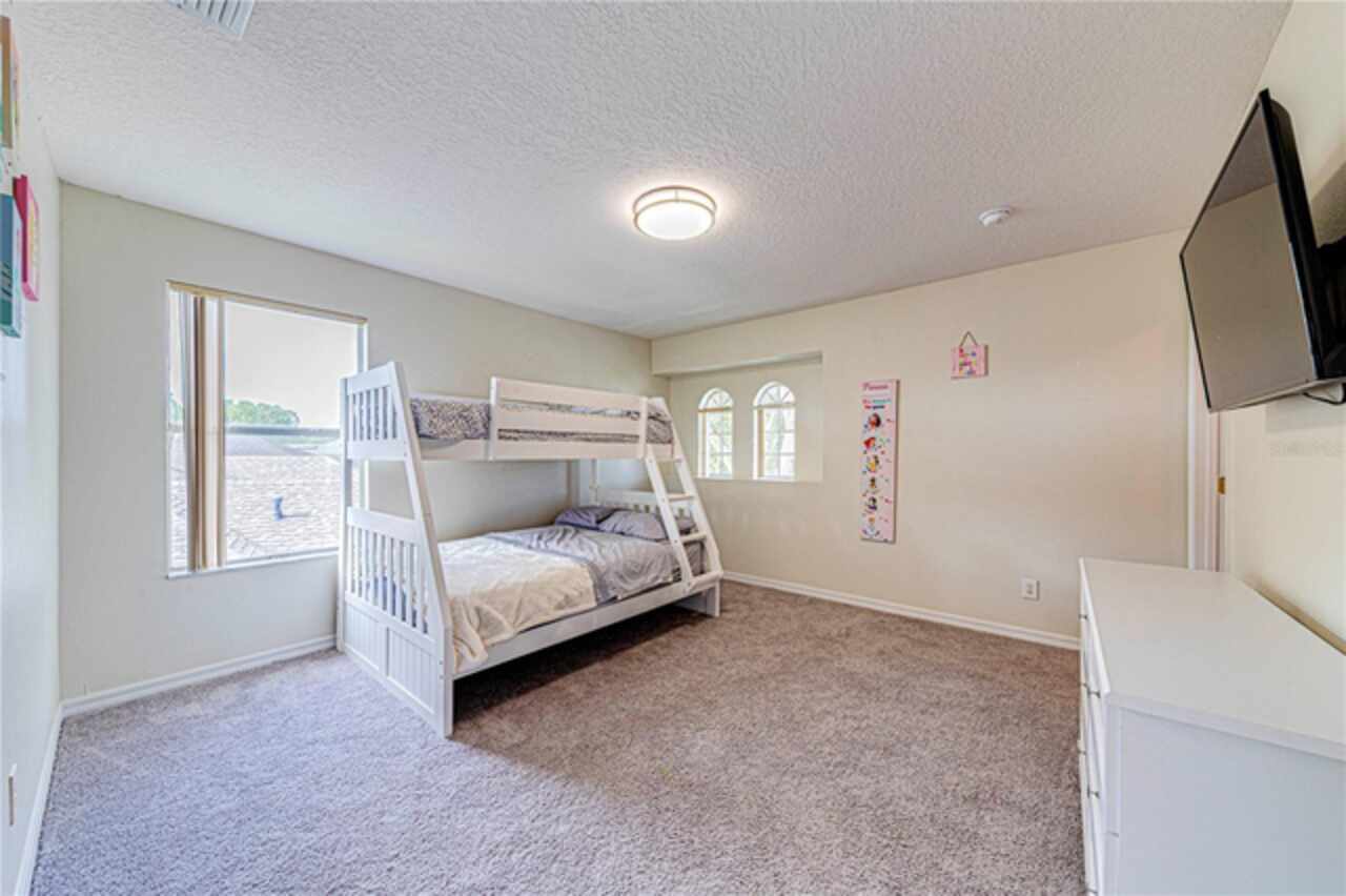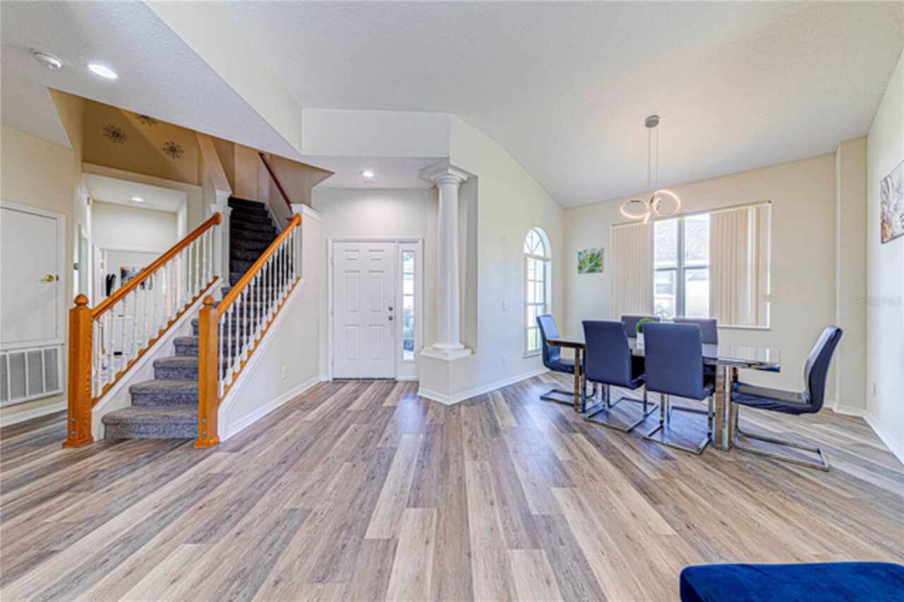 This spacious 6-bedroom, 4.5-bathroom home is located in the desirable community of Calabay Parc, less than 15 minutes from Disney World, shopping centers, and other major attractions. Recently updated with brand new waterproof luxury vinyl plank flooring on the first floor, new carpet upstairs, fresh paint, and a newer secondary AC unit, the home is ready for immediate move-in. Inside, a bright and open layout offers plenty of space to relax or entertain. The large living room flows seamlessly into the open kitchen and dining area, complete with a walk-in pantry, ample cabinetry, and generous counter space. The first-floor master suite features an en-suite bath with a separate shower for added comfort and privacy. Enjoy Florida living outdoors with a spacious screened deck and private pool, perfect for dining al fresco or unwinding after a long day. The community provides exterior landscaping and CCTV security for peace of mind. Conveniently located near major highways, shopping, and dining, this rental offers the perfect combination of comfort, space, and location. Schedule your showing today!