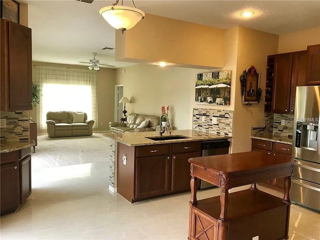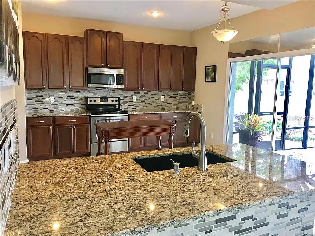 Welcome to this spacious and beautifully updated 4-bedroom, 3-bath home located in the desirable Kingsbridge East Village community of Oviedo. With over 2, 800 sq. ft. of living space, this home offers a bright open layout featuring an eat-in kitchen with stainless steel appliances, granite countertops, and modern finishes—perfect for everyday living and entertaining. The main floor includes a bedroom and full bathroom ideal for guests or a home office. Upstairs, you’ll find a large loft with a built-in wet bar and an impressive owner’s suite with tray ceilings, a walk-in closet, and a luxurious ensuite bathroom with a garden tub and separate shower. Enjoy the beautiful Florida lifestyle outdoors with an oversized paver patio overlooking a peaceful pond, perfect for relaxing or hosting gatherings. This home is conveniently located near top-rated schools, Oviedo Recreation Center, Oviedo on the Park, and a variety of shops and restaurants. Offering both comfort and convenience in a sought-after neighborhood, this property is move-in ready and waiting for you to call it home.