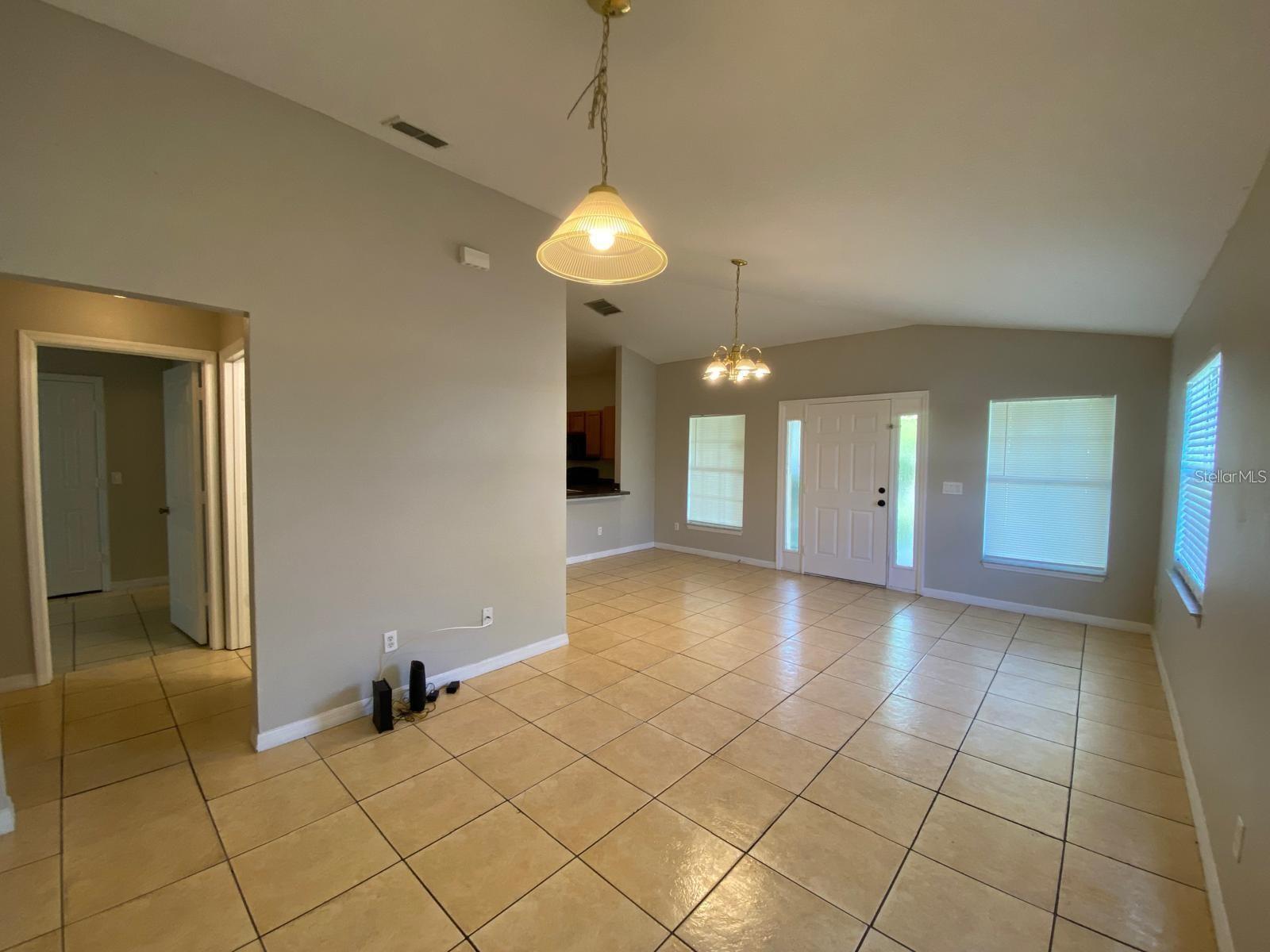 3 bedrooms, 2 bathrooms 1/2 duplex with one car garage. Property is on a large lot and features covered patios on both units. Inside, a great room floor plan, vaulted ceilings in the living areas, large kitchen with breakfast bar, large utility room, and good sized bedrooms. Lawn service included in the rent. Minutes from shopping, dining, and schools in Poinciana. Hurry!
