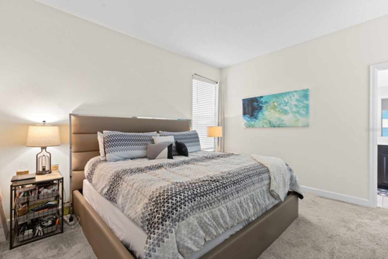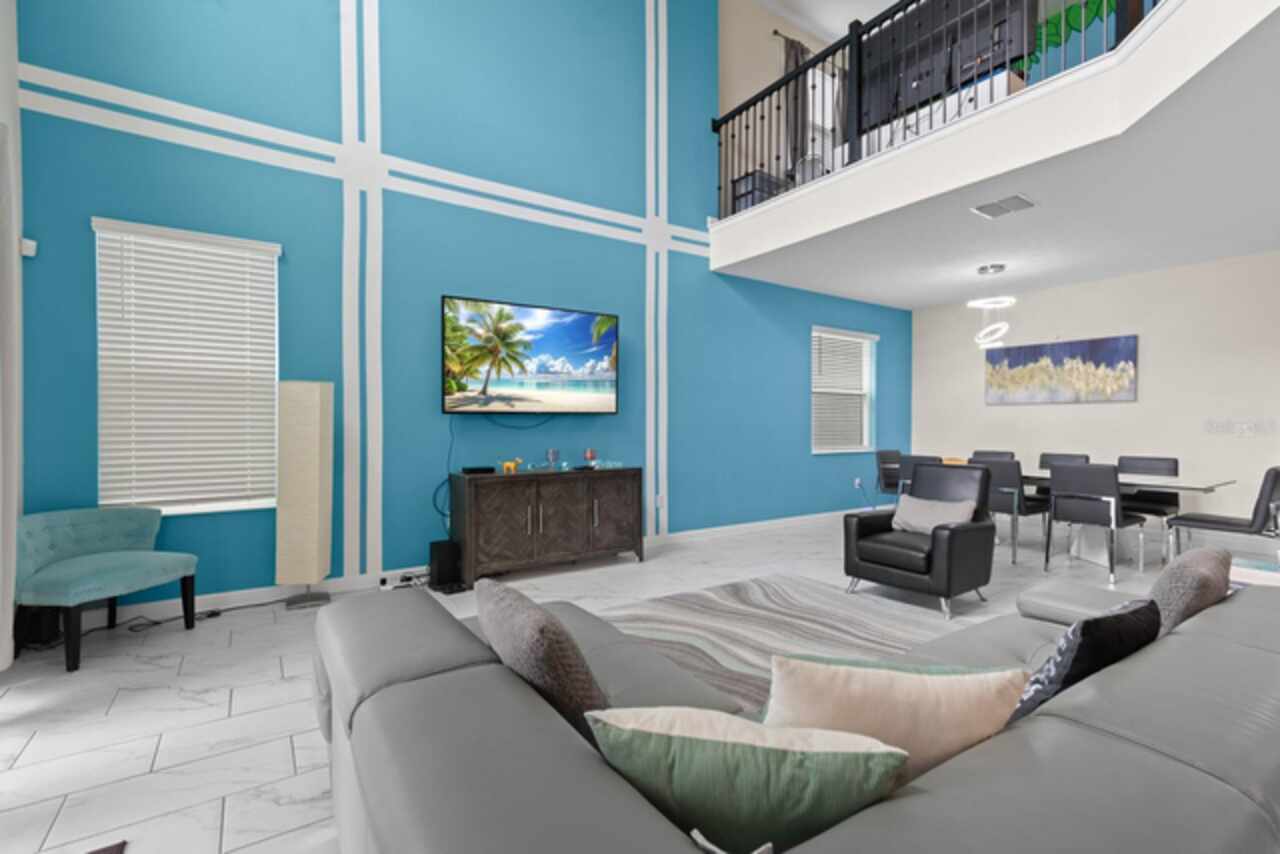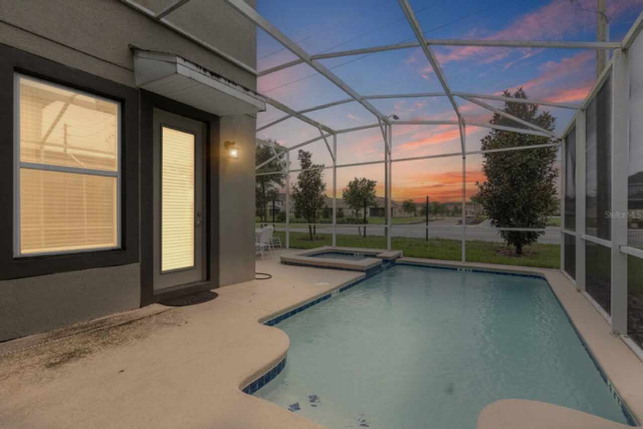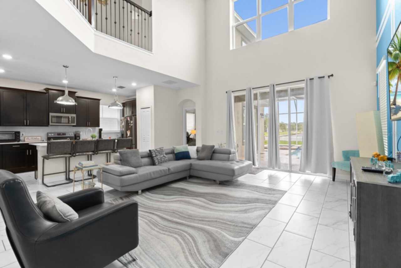 Spacious 5-bedroom, 5-bathroom single family home available for rent in the gated community of Champions Gate! This beautifully designed property can be rented furnished or unfurnished and features a bright and open floorplan with vaulted ceilings that soar to the second floor, filling the combined living room, dining area, and kitchen with natural light. The kitchen offers slate appliances, quartz countertops, and ample cabinet space. Two guest bedrooms are located on the first floor, including one with an attached bathroom that also serves as a convenient pool bath. Step outside to your private screened-in pool and spa—perfect for relaxing or entertaining. Upstairs, a versatile loft area leads to the remaining bedrooms. The spacious primary suite includes a bathroom with dual sinks and a walk-in shower, while the other two bedrooms share easy access to an additional guest bath. Enjoy resort-style living with access to two community clubhouses featuring pools, lazy rivers, restaurants, fitness centers, and more. Conveniently located near theme parks, major highways, shopping, and dining. Don’t miss this incredible rental opportunity in one of Central Florida’s most sought-after communities!