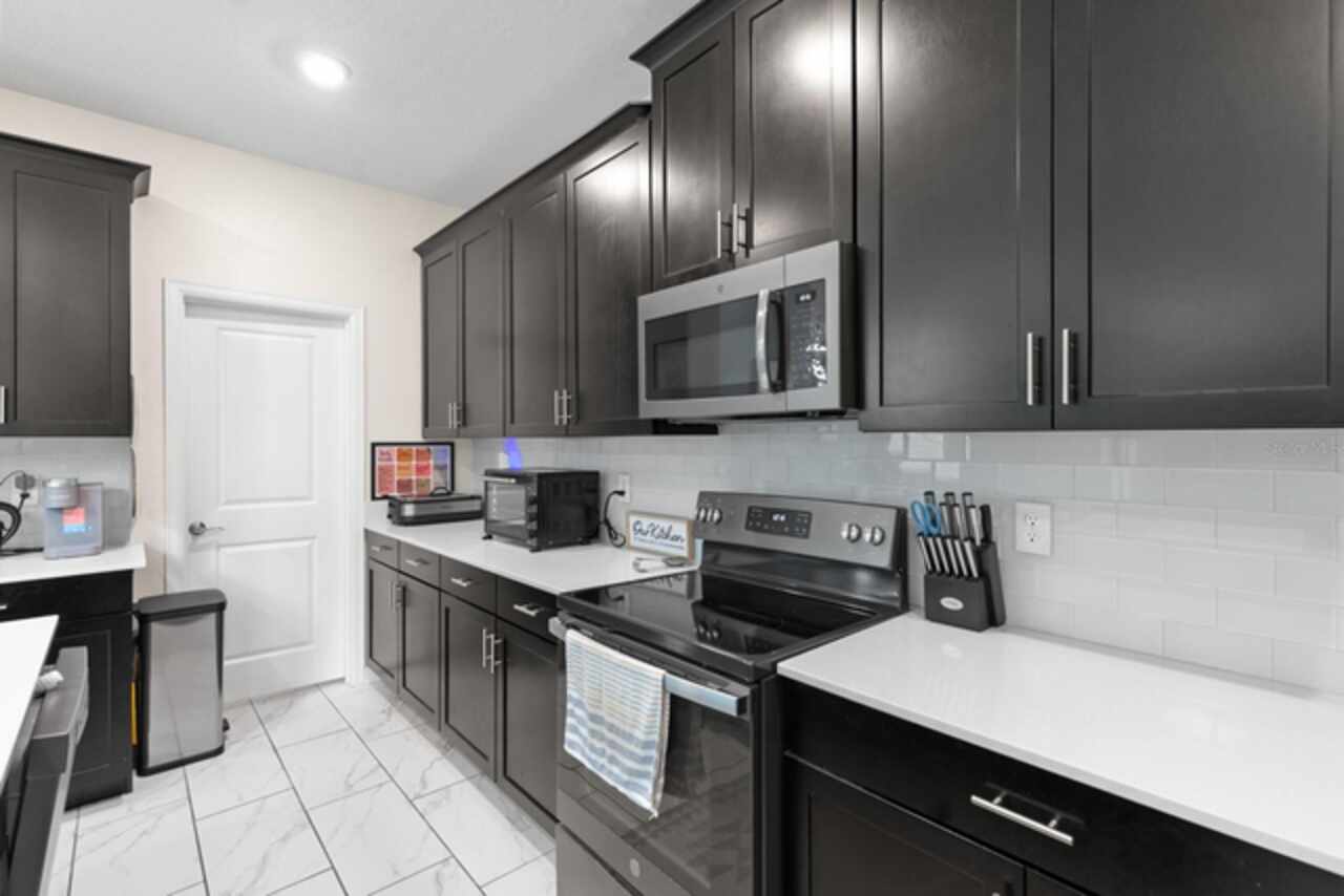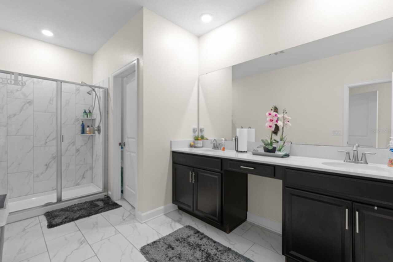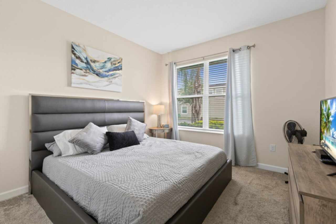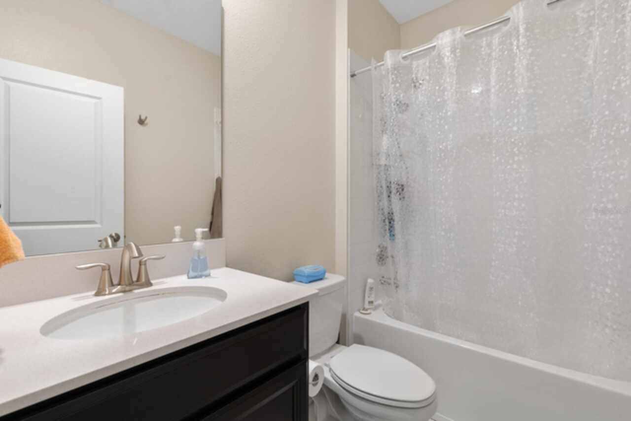 Spacious 5-bedroom, 5-bathroom single family home available for rent in the gated community of Champions Gate! This beautifully designed property can be rented furnished or unfurnished and features a bright and open floorplan with vaulted ceilings that soar to the second floor, filling the combined living room, dining area, and kitchen with natural light. The kitchen offers slate appliances, quartz countertops, and ample cabinet space. Two guest bedrooms are located on the first floor, including one with an attached bathroom that also serves as a convenient pool bath. Step outside to your private screened-in pool and spa—perfect for relaxing or entertaining. Upstairs, a versatile loft area leads to the remaining bedrooms. The spacious primary suite includes a bathroom with dual sinks and a walk-in shower, while the other two bedrooms share easy access to an additional guest bath. Enjoy resort-style living with access to two community clubhouses featuring pools, lazy rivers, restaurants, fitness centers, and more. Conveniently located near theme parks, major highways, shopping, and dining. Don’t miss this incredible rental opportunity in one of Central Florida’s most sought-after communities!