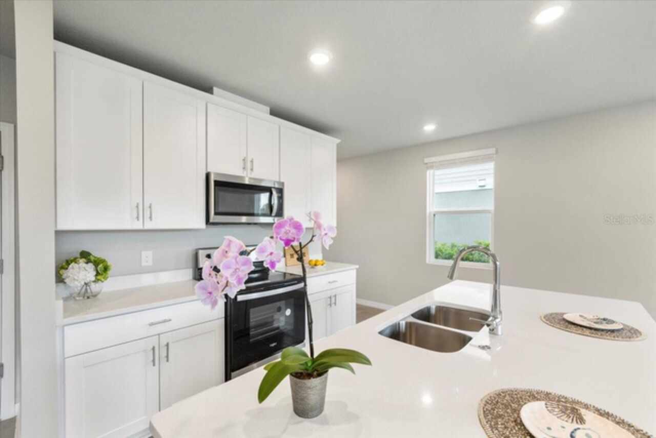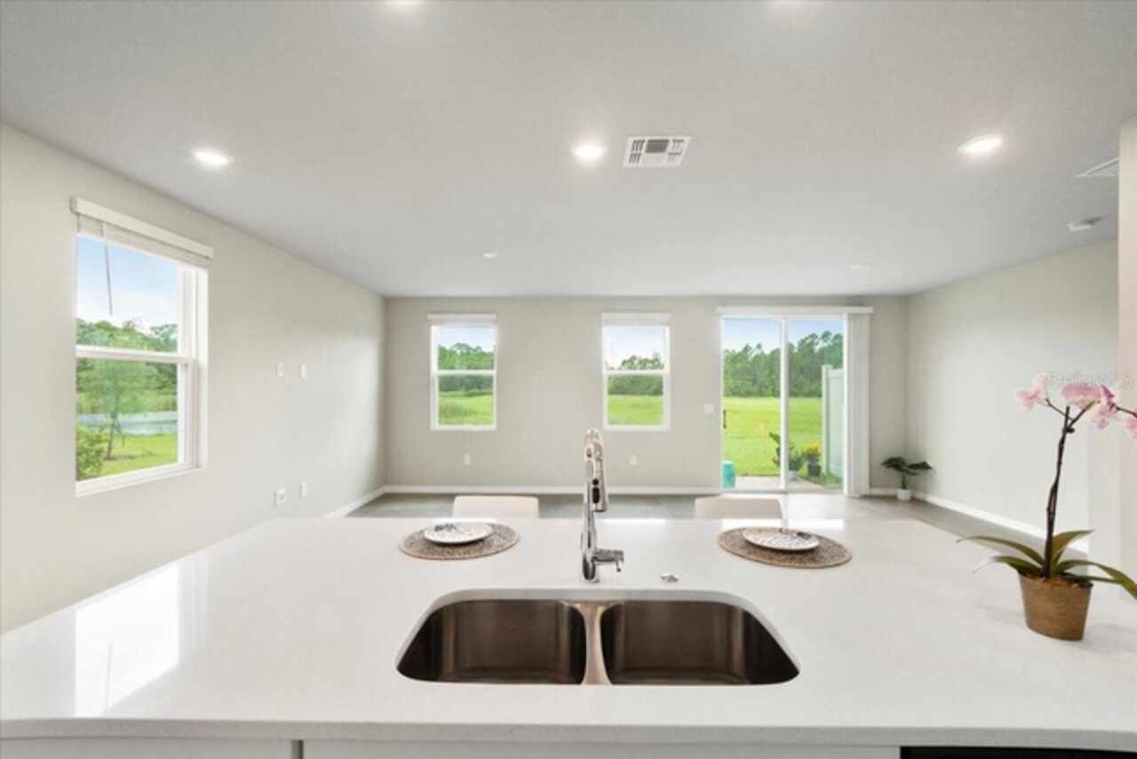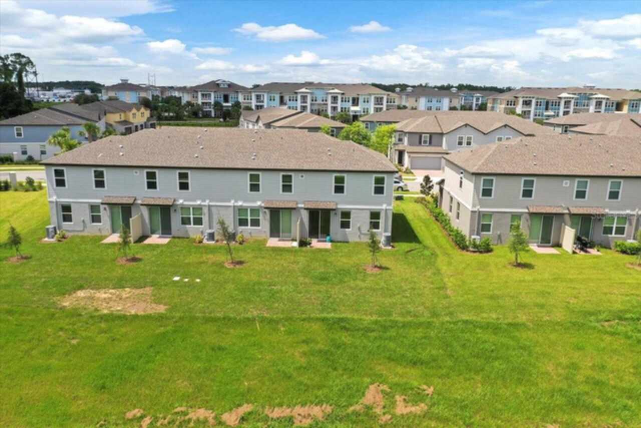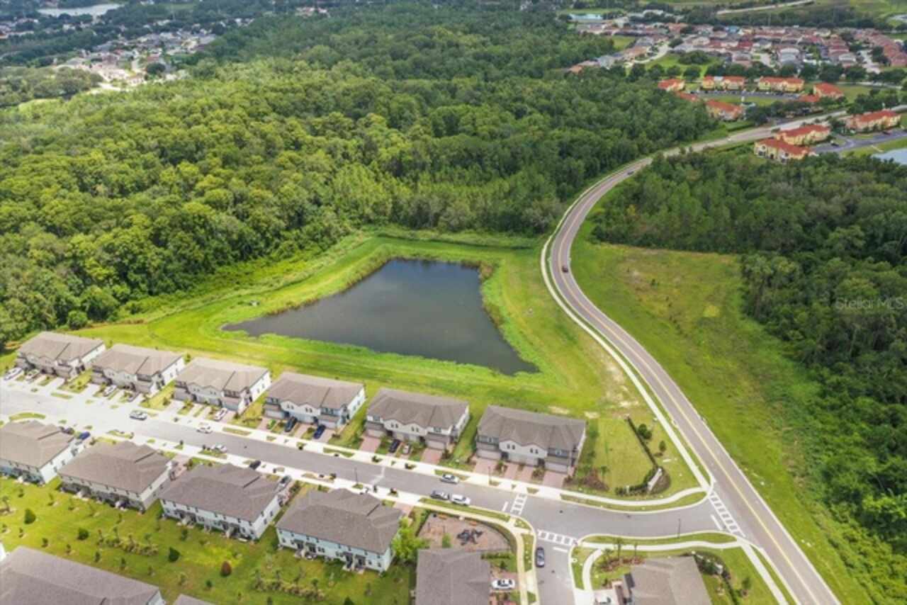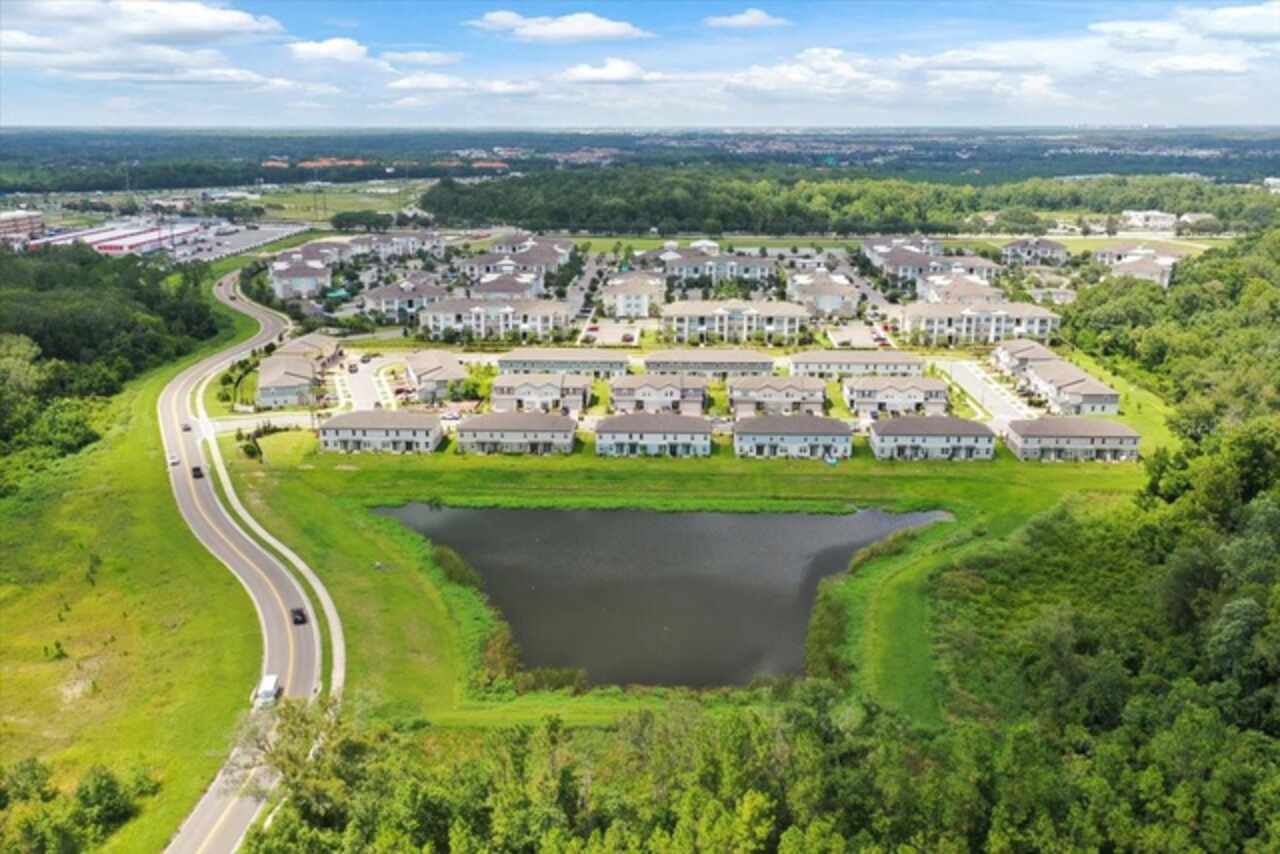 Brand-New Modern 3 BR Corner Townhome with Larger Floor Plan | Pond Water View | Bright Corner Unit with More Windows / Double Garage | Close to Disney & I-4 Access / Move-In Ready 11/1! This brand-new End townhome nestled in the prime location of Champions Gate offering an exceptional living experience. This *energy-efficient* home featuring 15 SEER AC, & dual pane low-E windows. This new community is a SHORT DISTANCE from I 4, with an abundance of retail, dining, major employment centers, and recreation areas, including Walt-Disney World, Universal Orlando, Omni Resort, Posner Park, and Celebration. As you walk inside, you'll be greeted by an open-concept main level that combines style and functionality. The spacious layout creates an ideal space for entertaining, with the kitchen island serving as the perfect centerpiece for gatherings with friends and family. Prepare delicious meals while staying engaged with your guests, making memorable moments. On the upper level, you'll be greeted by a thoughtfully designed space that caters to your convenience. A laundry room equipped with a full-size washer and dryer makes the task of managing your household a breeze. Additionally, a versatile loft area provides a flexible space that can be utilized to suit your needs, whether as a cozy relaxation spot, a home office, or a play area. The Owner’s Suite offers a serene sanctuary featuring a generously sized walk-in closet to accommodate your wardrobe and belongings. The owner’s bathroom features a spacious Walk-in Shower, dual sink, Quartz counters, and built-in shelving. Two additional bedrooms share the guest bathroom. The home has elegant interior finishes including 42” cabinets, Quartz counters, ceramic tile on the main level and all wet areas, and carpet in the bedrooms. 2” faux wood blinds come in every room. Enjoy Florida living at its best!