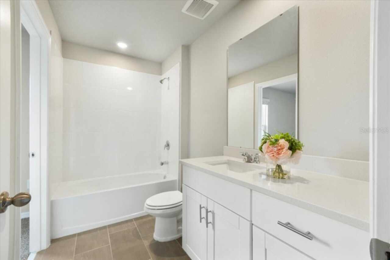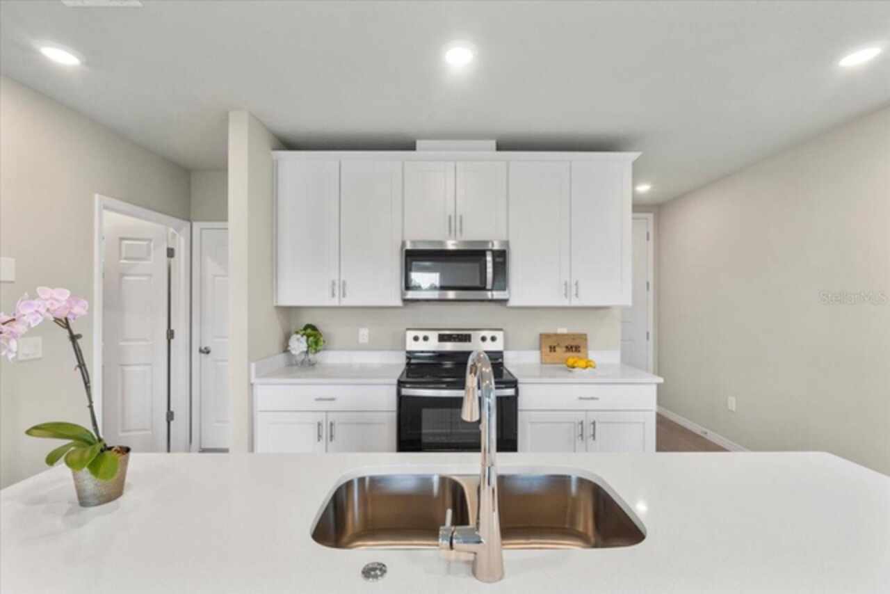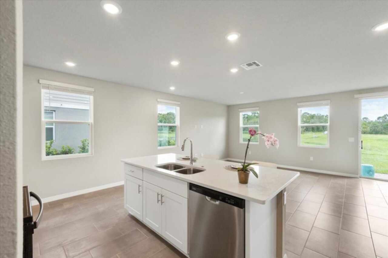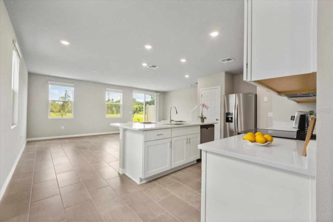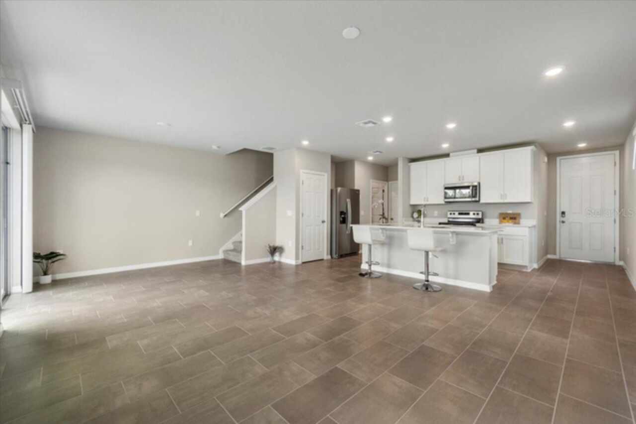 Brand-New Modern 3 BR Corner Townhome with Larger Floor Plan | Pond Water View | Bright Corner Unit with More Windows / Double Garage | Close to Disney & I-4 Access / Move-In Ready 11/1! This brand-new End townhome nestled in the prime location of Champions Gate offering an exceptional living experience. This *energy-efficient* home featuring 15 SEER AC, & dual pane low-E windows. This new community is a SHORT DISTANCE from I 4, with an abundance of retail, dining, major employment centers, and recreation areas, including Walt-Disney World, Universal Orlando, Omni Resort, Posner Park, and Celebration. As you walk inside, you'll be greeted by an open-concept main level that combines style and functionality. The spacious layout creates an ideal space for entertaining, with the kitchen island serving as the perfect centerpiece for gatherings with friends and family. Prepare delicious meals while staying engaged with your guests, making memorable moments. On the upper level, you'll be greeted by a thoughtfully designed space that caters to your convenience. A laundry room equipped with a full-size washer and dryer makes the task of managing your household a breeze. Additionally, a versatile loft area provides a flexible space that can be utilized to suit your needs, whether as a cozy relaxation spot, a home office, or a play area. The Owner’s Suite offers a serene sanctuary featuring a generously sized walk-in closet to accommodate your wardrobe and belongings. The owner’s bathroom features a spacious Walk-in Shower, dual sink, Quartz counters, and built-in shelving. Two additional bedrooms share the guest bathroom. The home has elegant interior finishes including 42” cabinets, Quartz counters, ceramic tile on the main level and all wet areas, and carpet in the bedrooms. 2” faux wood blinds come in every room. Enjoy Florida living at its best!