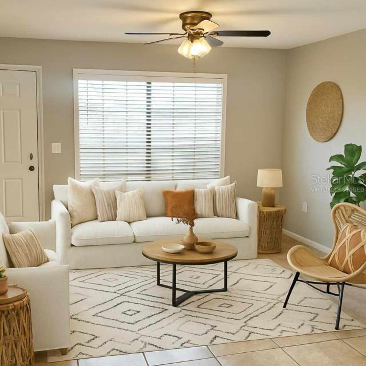 Ceiling Fans(s), Eat-in Kitchen, Living Room/Dining Room Combo, PrimaryBedroom Upstairs, Solid Wood Cabinets, Split Bedroom, Stone Counters, Thermostat, Window Treatments