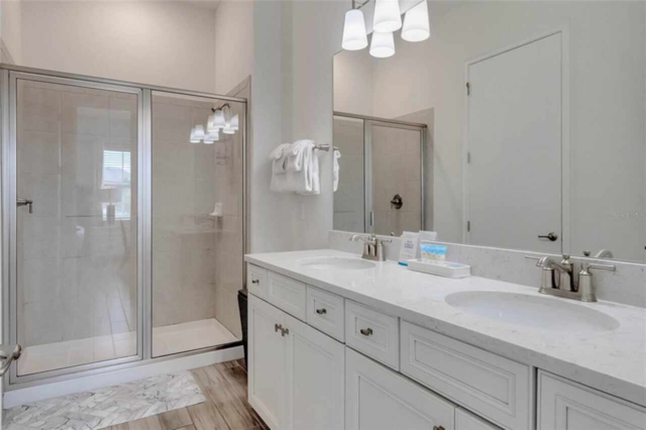 Welcome to Paradise at Margaritaville Resort Orlando! This stunning 2-bedroom, 2.5-bath cottage is nestled in one of the resort’s premium locations, just minutes from Walt Disney World. Built in 2019, the home seamlessly blends island-inspired charm with modern upgrades for a truly turnkey experience. Enjoy a covered front porch and spacious back patio surrounded by lush foliage and shell-lined pathways. Inside, you’ll find wood-look tile flooring, quartz countertops, high-end appliances, and in-ceiling speakers that sync effortlessly with your TV or phone bringing vacation living to life. Internet, cable, landscaping, valet trash, 24 hour security, and more are all included with your rent! Upstairs, the primary suite offers a peaceful escape with dual sinks and a walk-in shower, while the second bedroom features its own full insuite bath with a soaking tub. A convenient half bath on the main level and a full-size washer and dryer make longer stays or back-to-back guest bookings effortless. This home is being RENTED fully furnished with the Margaritaville-approved “SAIL AWAY” Furniture and Housewares Package, a $25, 000 value that includes everything from TVs and blinds to linens, dishware, and coastal-inspired artwork. Renting in Margaritaville means access to a world-class lineup of resort amenities, including oasis-style lagoon pools, full-service bars, restaurants, fitness center, relaxing spa, live music venues, dog park, movie theater, on-site water park, retail village, and more. It’s not just a home, it’s a lifestyle filled with sun-soaked days, live music nights, and the carefree feeling of always being on vacation. Ready to live the Margaritaville lifestyle? This fully furnished cottage is move-in—and vibe-out—ready. Call or text me for an easy showing of this one-of-a-kind tropical escape.