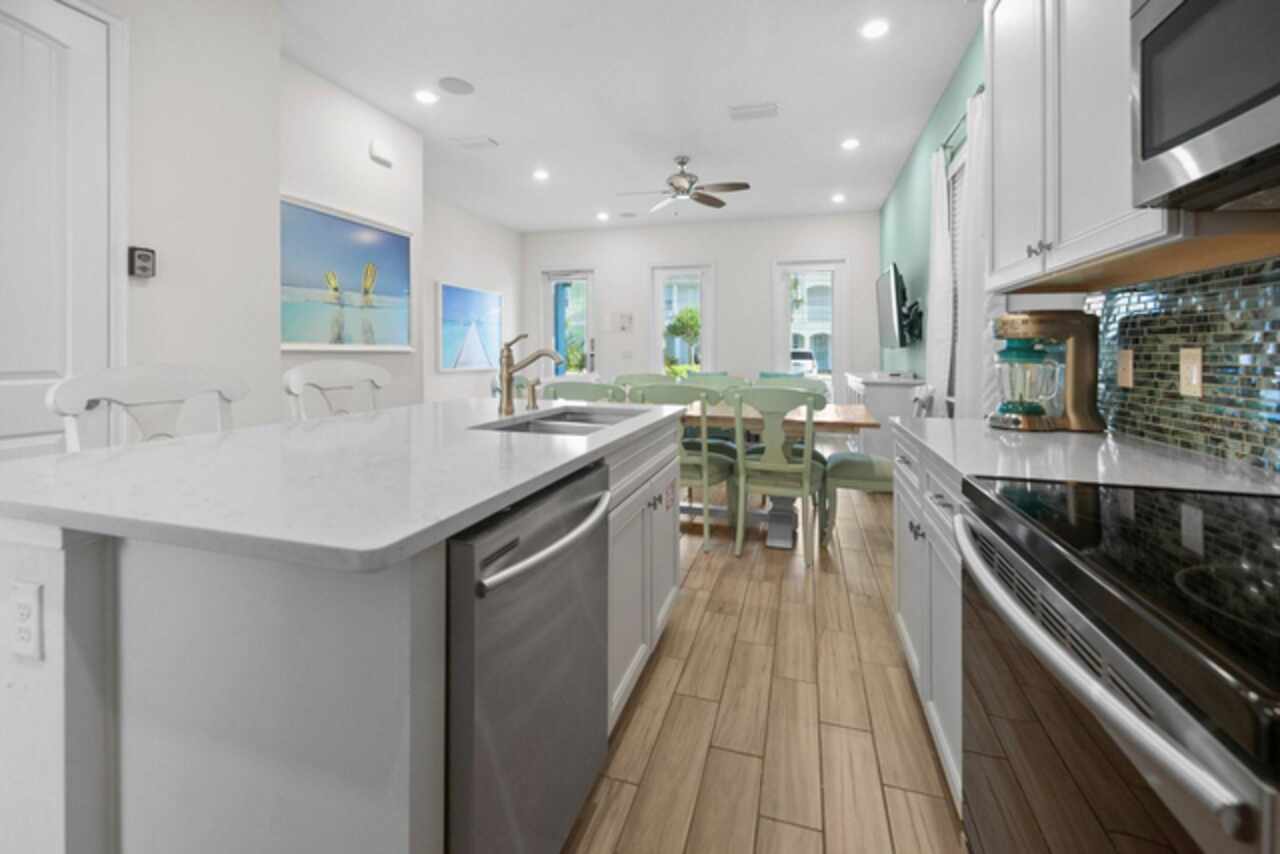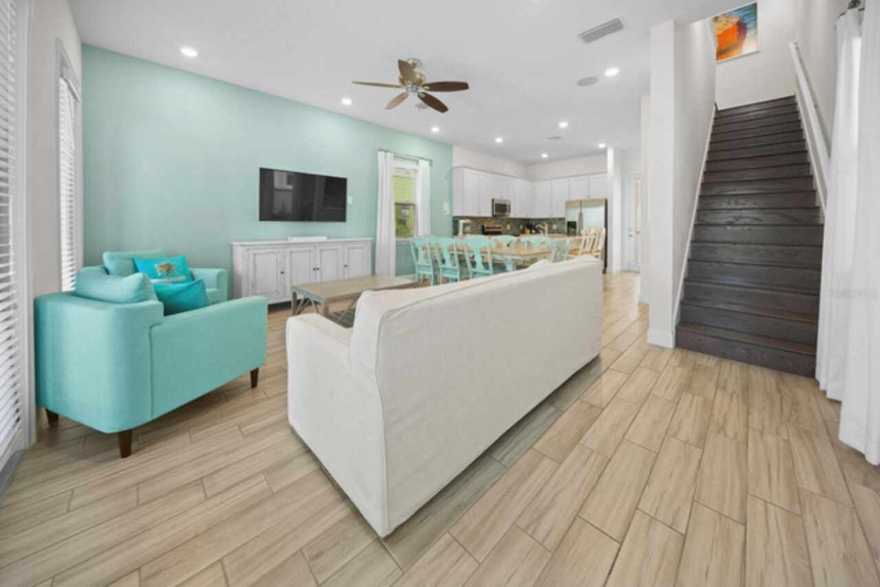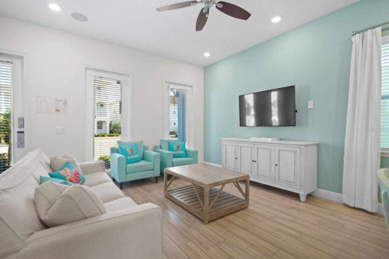 Feeling stuck? Longing for that “Lost Shaker of Salt”?! The Margaritaville Resort Cottages can solve ALL these woes! This world famous resort exudes cheer with a colorful palette of tropical hues and lush landscaping! Imagine owning a 3 story Island style home drenched in aqua blue with stylish awnings and crisp white balconies, this wins hands down for curb appeal!! Worth mentioning is the quality construction and choice of a concrete tile roof in lieu of shingles and a center of state location! The interior is fully furnished with superbly crafted Ethan Allen furniture guaranteed to last with solid wood construction and durable fabrics, a 55k package. All bedding & linens are from the Margaritaville Hotel, ensuring the same luxurious slumber! Everything is included from tv’s to modems to artwork and silverware! All appliances large and small also convey! Luxury vinyl plank keeps things cohesive and very low maintenance. This floor plan is spacious and gives plenty of privacy to large parties looking to kick back and relax! The backyard has a new hot tub and is a great spot to lounge and enjoy a cocktail or two, because it’s always 5 o’clock somewhere! Yes, it can get catchy…so don’t blow out your flip flop or step on a pop top rushing to see this amazing life you could be living or benefitting from! A cheeseburger in paradise is an understatement with an incredible array of restaurants and specialty shoppes throughout the resort. Sunset Walk offers an array of international delicacies. Dine and dance the night away at Estefan’s Kitchen enjoying decadent Cuban cuisine or pop into the Wharf for fresh seafood, a cold beer and live music! With countless choices and activities you’ll never run out of new experiences to try and savor. On site make a splash at the Island H20 water park, one of the many pools or jump on the free shuttle to the parks! A reservation is required thru Fins Up Beach Resort. This home is also available for sale!