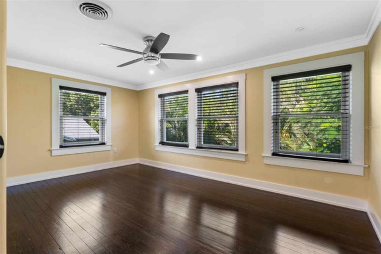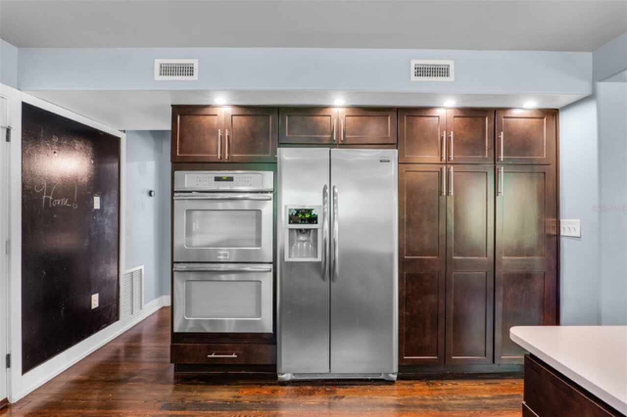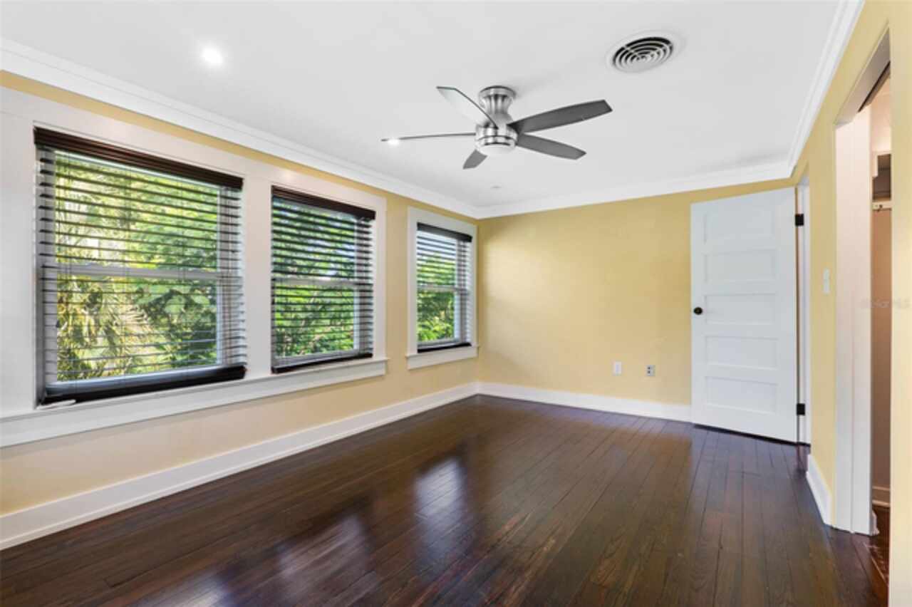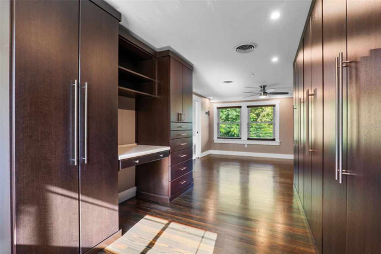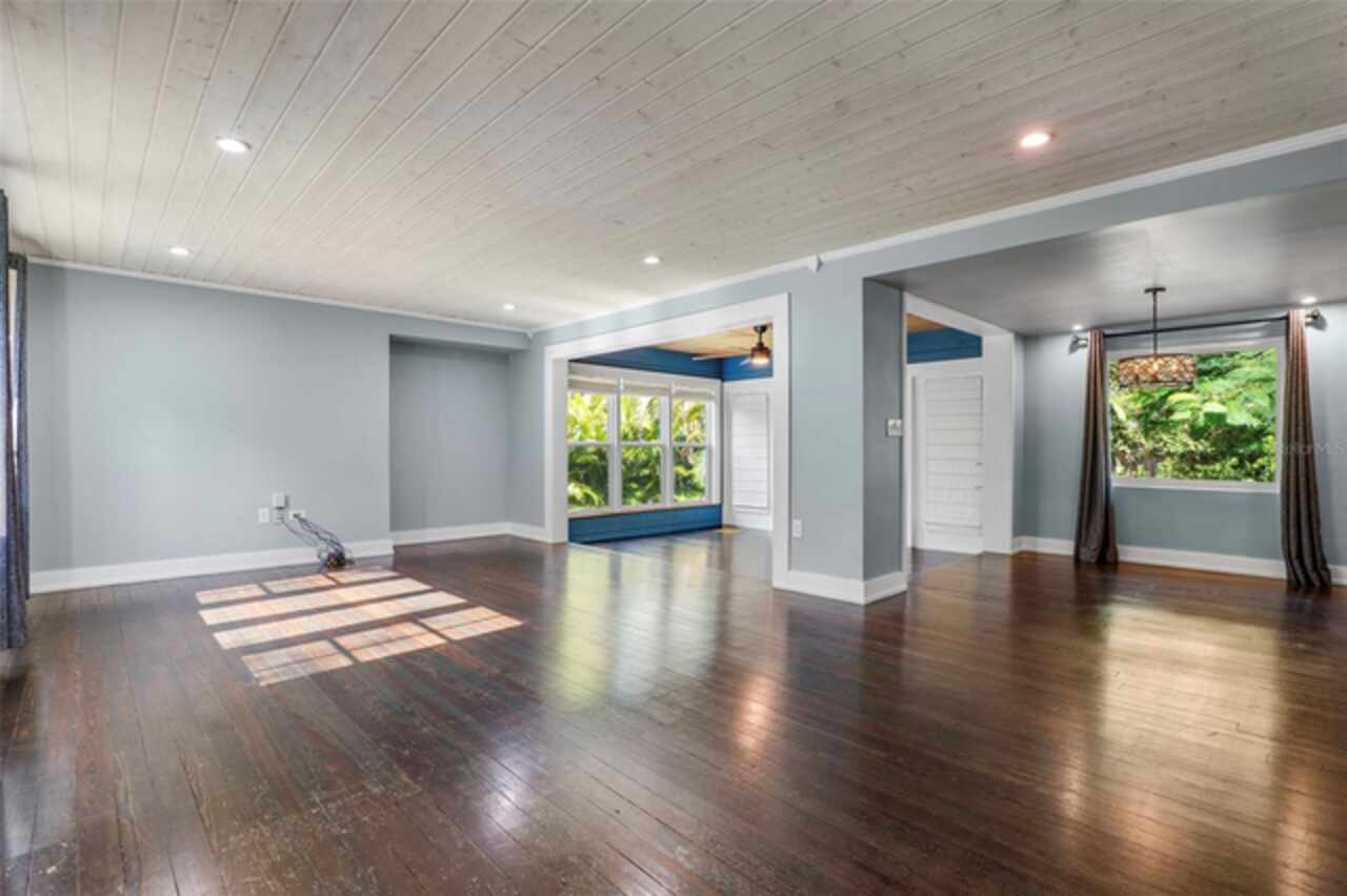 Step into timeless style with this beautifully maintained mid-century modern home sitting on a large 0.29-acre lot in the heart of Delaney Park, one of downtown Orlando’s most sought-after neighborhoods, and just stone’s throw from the 903 Mills Market and right around the corner from Lake Davis, where you can enjoy walking paths and views of the downtown Orlando skyline. Built in the 1950s, this home embraces the clean lines, thoughtful architecture, and organic flow that define the era, while offering modern updates and comforts you'd expect today. From the moment you pull into the half-circle driveway, the home draws you in with its understated curb appeal. Inside, the open living and dining room area, featuring rich wood floors and exposed beam ceilings, welcomes you with sunlight streaming through the updated windows. The kitchen blends classic and contemporary with quartz countertops, a farm sink, and custom espresso cabinetry. It is equipped with stainless steel appliances including a Frigidaire double oven and refrigerator, a cooktop, and a dishwasher. Just around the corner, a first-floor bedroom and updated full bath offer flexibility for guests, office, or multigenerational living. Right off the kitchen, you'll find access to the oversized two-car garage, complete with space for laundry and a built-in mudroom area. Head upstairs and discover the primary suite, nestled quietly in the northeast corner. It features custom built-in closet features and a spa-inspired bathroom with a rain shower and beautifully selected modern finishes, including Designer-grade Oceana Azul Tile. Down the hall, where the wall displays the original blueprints of the home, two additional bedrooms share another updated full bath, each room thoughtfully designed with comfort and style in mind. Step out onto the deck-style lanai and into your own private garden retreat hidden in the middle of the city. The large backyard is filled with mature trees, tropical landscaping, and plenty of room to play, relax, or entertain. It’s private, peaceful, and feels like a secret garden in the middle of the city. A shed out back adds practical storage without interrupting the natural beauty of the space. Recent upgrades include a new AC system (2022), updated electric and plumbing systems in recent years, and new windows (2018). With quick access to 408, I-4, and downtown’s thriving food and business scene, this home offers location and style. Homes like this, where architectural charm, updates, and a truly special yard come together, rarely come to market. Schedule your private showing today and see why this Delaney Park home is something truly special.