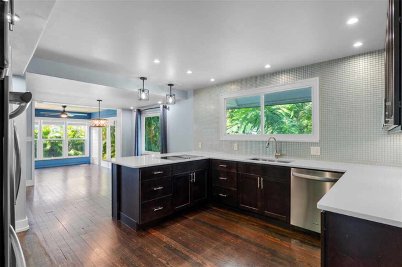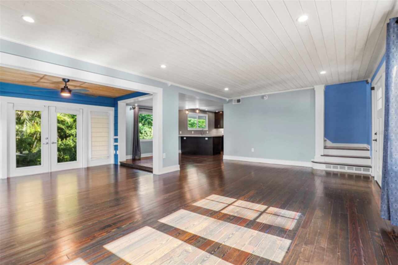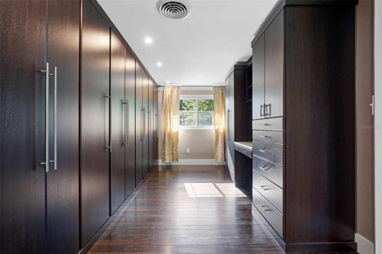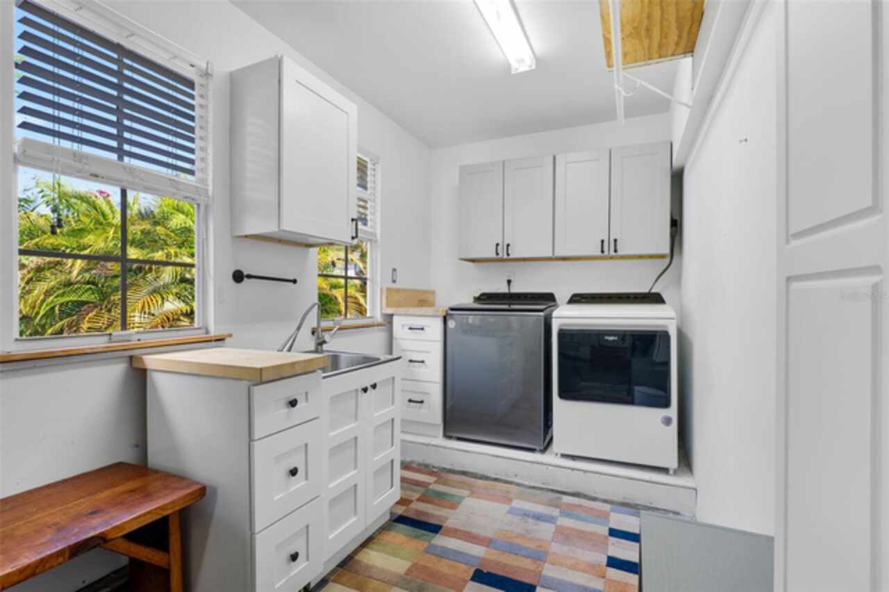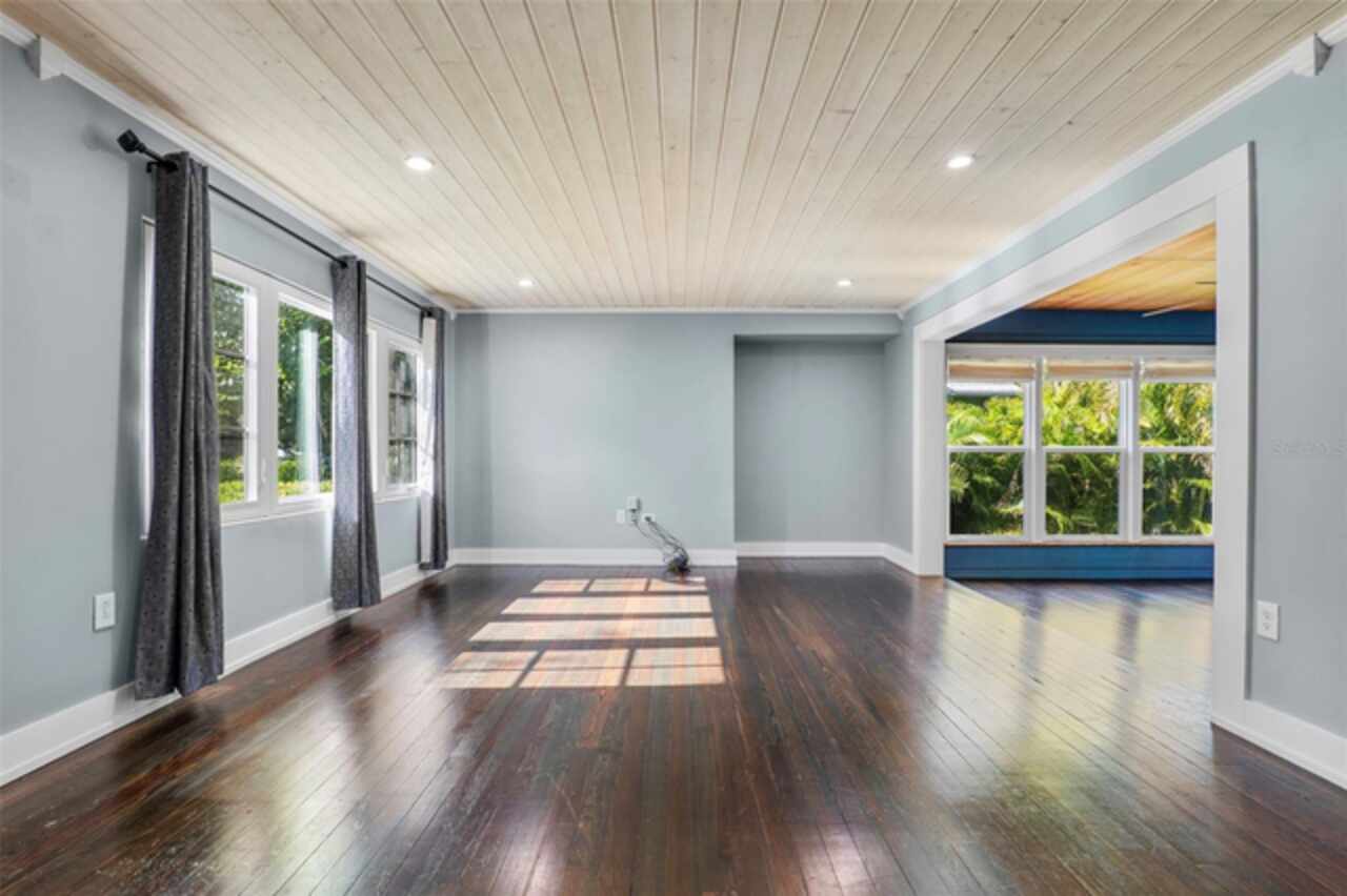 Step into timeless style with this beautifully maintained mid-century modern home sitting on a large 0.29-acre lot in the heart of Delaney Park, one of downtown Orlando’s most sought-after neighborhoods, and just stone’s throw from the 903 Mills Market and right around the corner from Lake Davis, where you can enjoy walking paths and views of the downtown Orlando skyline. Built in the 1950s, this home embraces the clean lines, thoughtful architecture, and organic flow that define the era, while offering modern updates and comforts you'd expect today. From the moment you pull into the half-circle driveway, the home draws you in with its understated curb appeal. Inside, the open living and dining room area, featuring rich wood floors and exposed beam ceilings, welcomes you with sunlight streaming through the updated windows. The kitchen blends classic and contemporary with quartz countertops, a farm sink, and custom espresso cabinetry. It is equipped with stainless steel appliances including a Frigidaire double oven and refrigerator, a cooktop, and a dishwasher. Just around the corner, a first-floor bedroom and updated full bath offer flexibility for guests, office, or multigenerational living. Right off the kitchen, you'll find access to the oversized two-car garage, complete with space for laundry and a built-in mudroom area. Head upstairs and discover the primary suite, nestled quietly in the northeast corner. It features custom built-in closet features and a spa-inspired bathroom with a rain shower and beautifully selected modern finishes, including Designer-grade Oceana Azul Tile. Down the hall, where the wall displays the original blueprints of the home, two additional bedrooms share another updated full bath, each room thoughtfully designed with comfort and style in mind. Step out onto the deck-style lanai and into your own private garden retreat hidden in the middle of the city. The large backyard is filled with mature trees, tropical landscaping, and plenty of room to play, relax, or entertain. It’s private, peaceful, and feels like a secret garden in the middle of the city. A shed out back adds practical storage without interrupting the natural beauty of the space. Recent upgrades include a new AC system (2022), updated electric and plumbing systems in recent years, and new windows (2018). With quick access to 408, I-4, and downtown’s thriving food and business scene, this home offers location and style. Homes like this, where architectural charm, updates, and a truly special yard come together, rarely come to market. Schedule your private showing today and see why this Delaney Park home is something truly special.