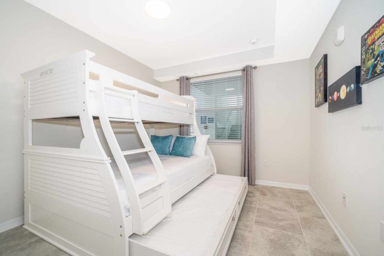 This fully-equipped 4-bedroom, 3-bathroom townhouse with a private pool is the perfect setting for providing the comfort that invites you to relax after an active day. Located in the Storey Lake Resort community, 6 miles from Disney Springs, 16.7 miles from Orlando International Airport, 8 miles from Universal Studios, and close to theme parks, shopping centers, and restaurants, it offers occupants, owners, vacationers, and renters a comfortable and peaceful life with wide access routes such as Osceola Parkway, Highway 535, and I-4, and Highway 417. The townhouse is an alternative to living with resort-like amenities like a permanent vacation, with parking, parks, a gym, game rooms, and movie theaters, among others. In this private resort with 24-hour security, residents can relax and enjoy everything from the resort-style pool, splash area, and waterslides to the clubhouse, poolside bars, and lake activities. It is located within The Cove Resort at Storey Lake. The properties in this community can be used for short-term vacation rentals, long-term rentals, and permanent residence