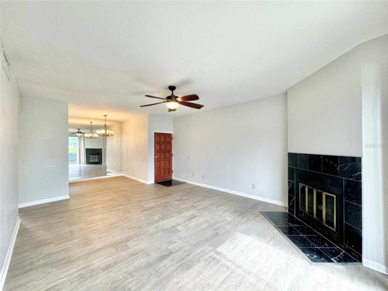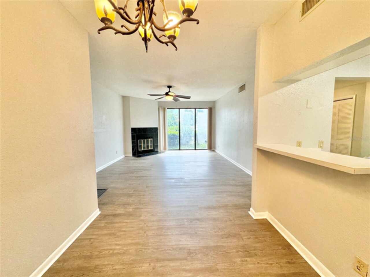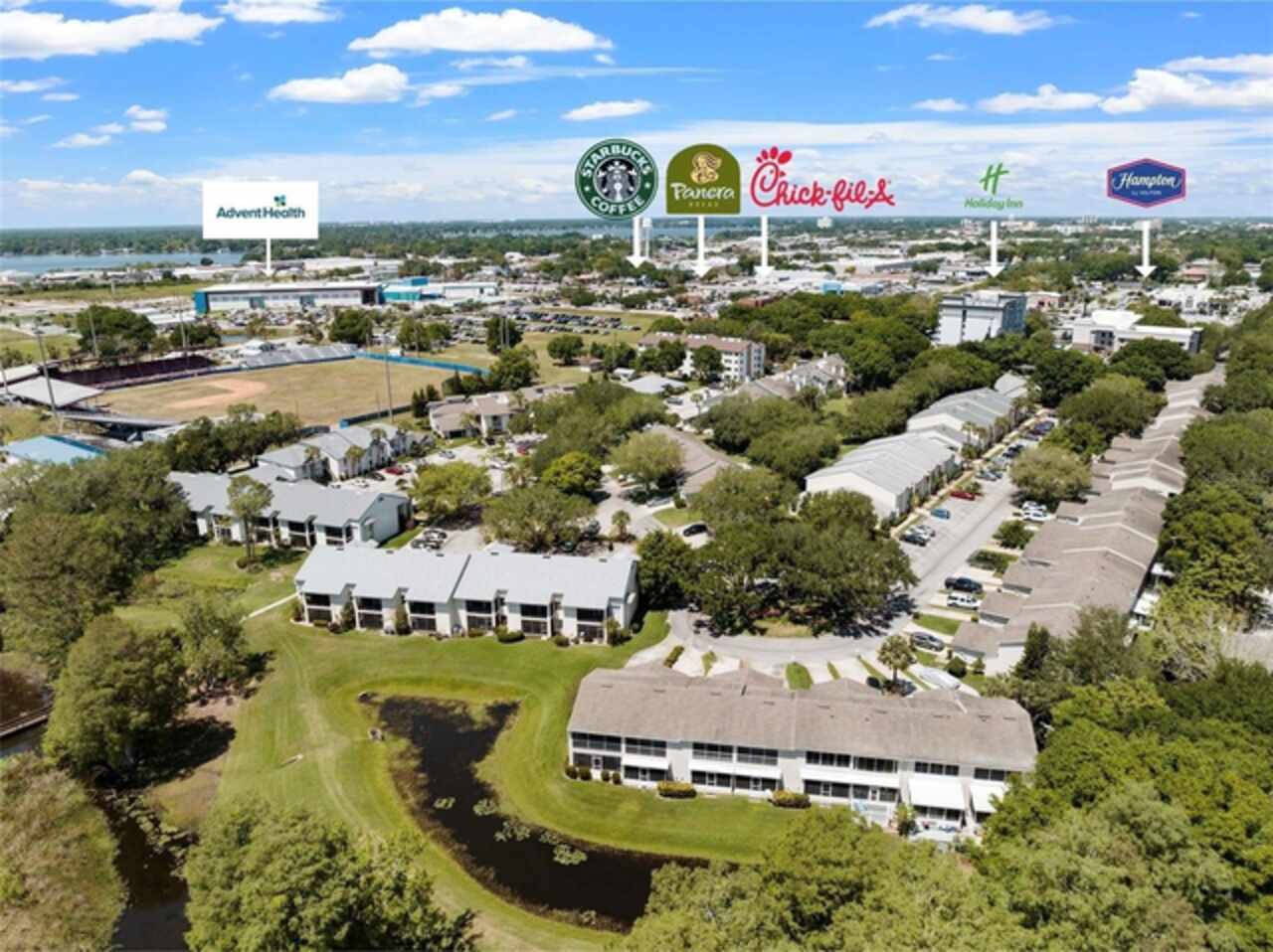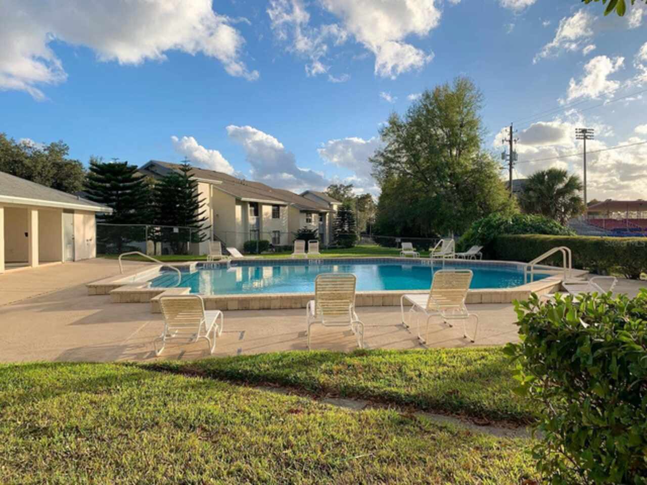 Talk about location!!! This cozy ground-floor condo is perfectly positioned across from the community pool in the desirable Park Lake waterfront community. Enjoy low-maintenance living with just steps away from Chick-fil-A, Panera Bread, and Starbucks. Walmart, local restaurants, downtown shopping, medical offices, and all your essentials are only minutes from your door. Inside, you'll find vinyl plank flooring throughout, a spacious open living room featuring a decorative fireplace and large windows that flood the space with natural light. The dining area is conveniently located off the kitchen, which comes equipped with all appliances and ample cabinet space. The primary bedroom is generously sized and includes a spacious closet and a private en-suite with a tub/shower. For added convenience, an inside utility closet with washer/dryer hookups is located just off the primary bedroom. The second bedroom is ideally situated near the guest bathroom. The Park Lake community offers a serene lakefront setting with a gazebo and dock overlooking picturesque Lake Lulu—perfect for unwinding and enjoying the outdoors.